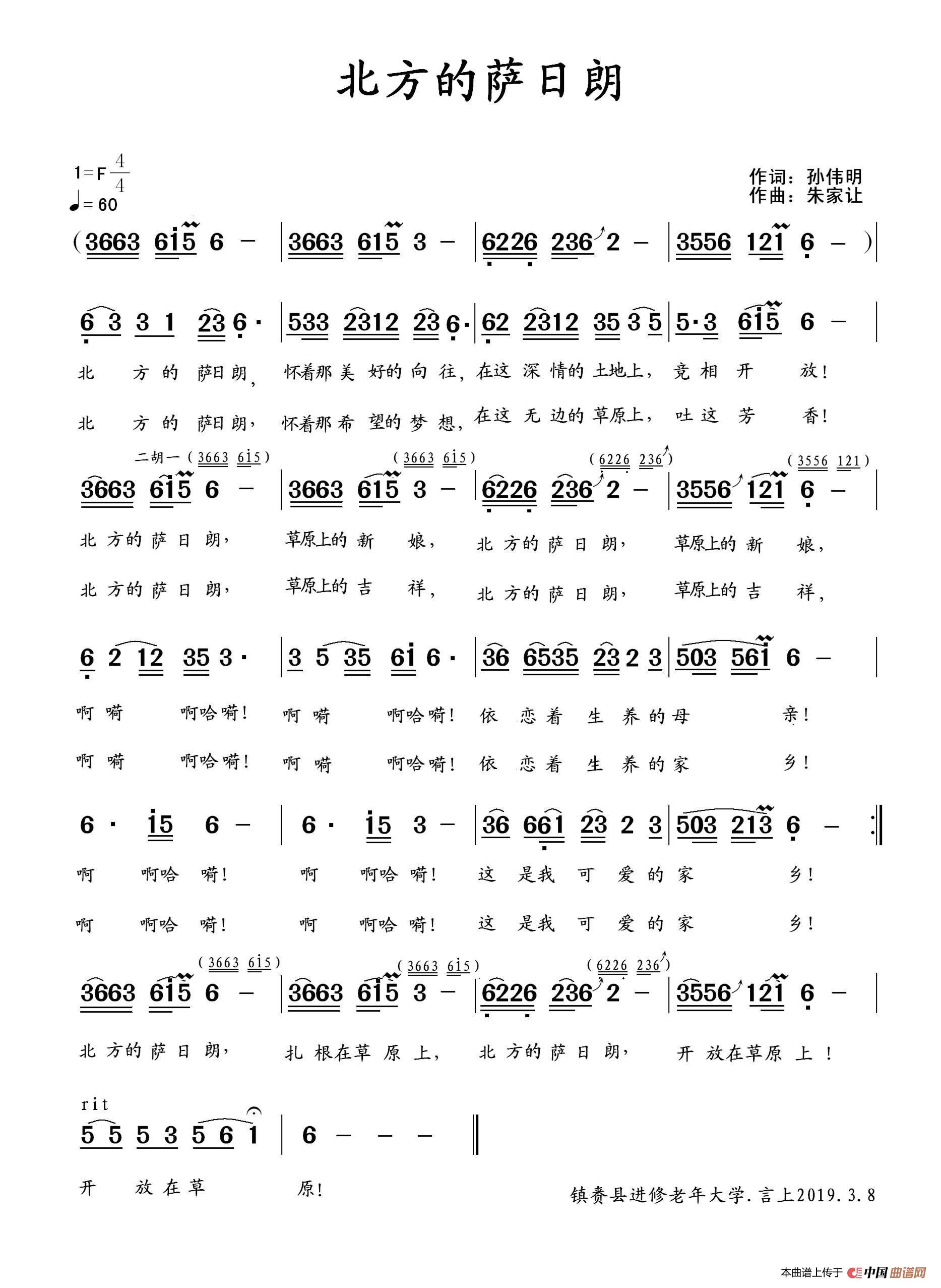 关于《北方的萨日朗》曲谱的评论