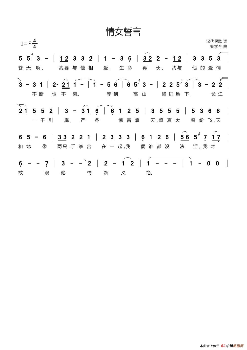 关于《情女誓言》曲谱的评论