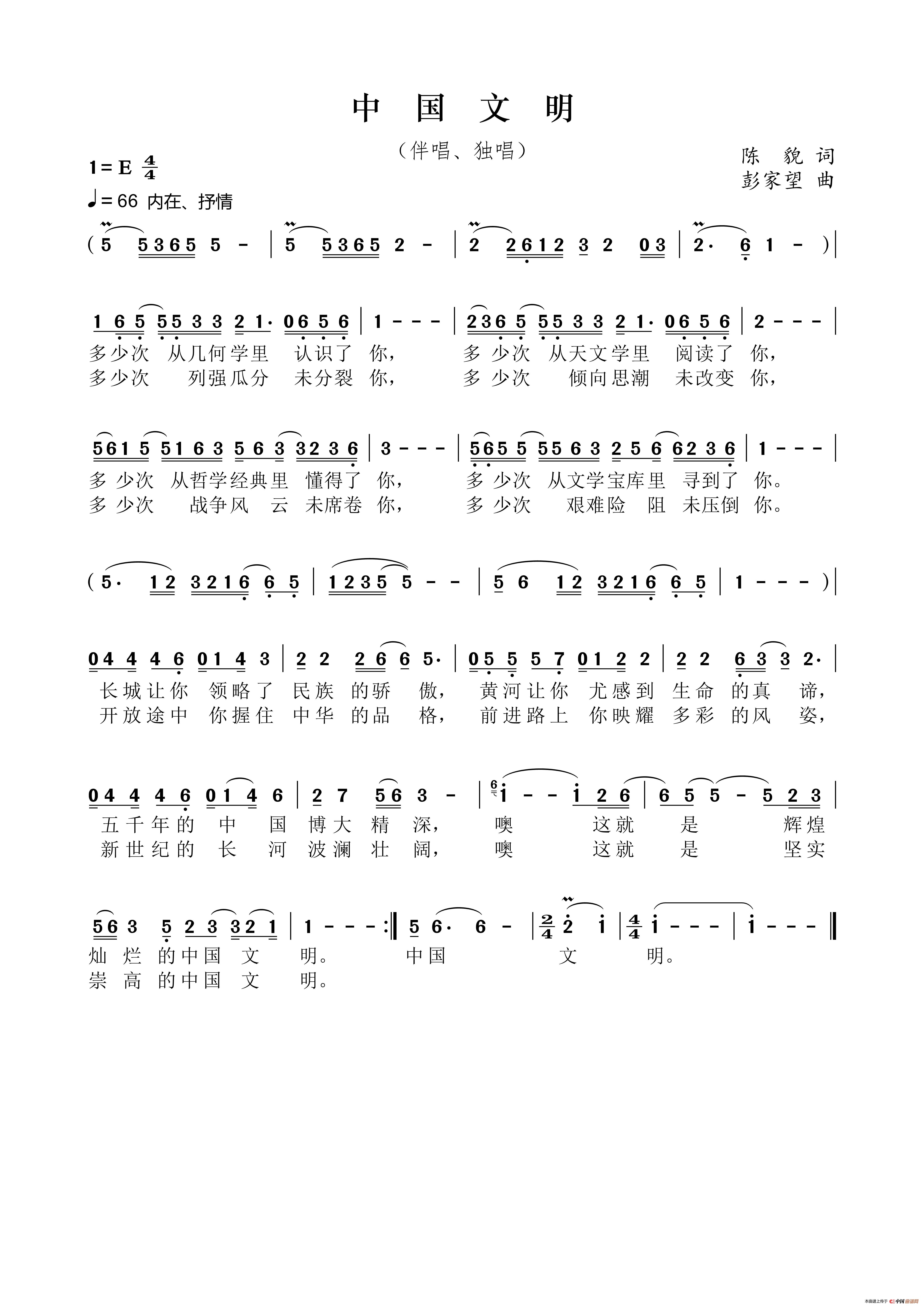 关于《中国文明》曲谱的评论