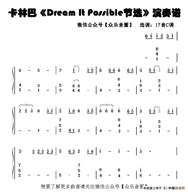 华为手机主题曲节选《Dream It Possible》(拇指琴卡林巴琴和弦简谱)