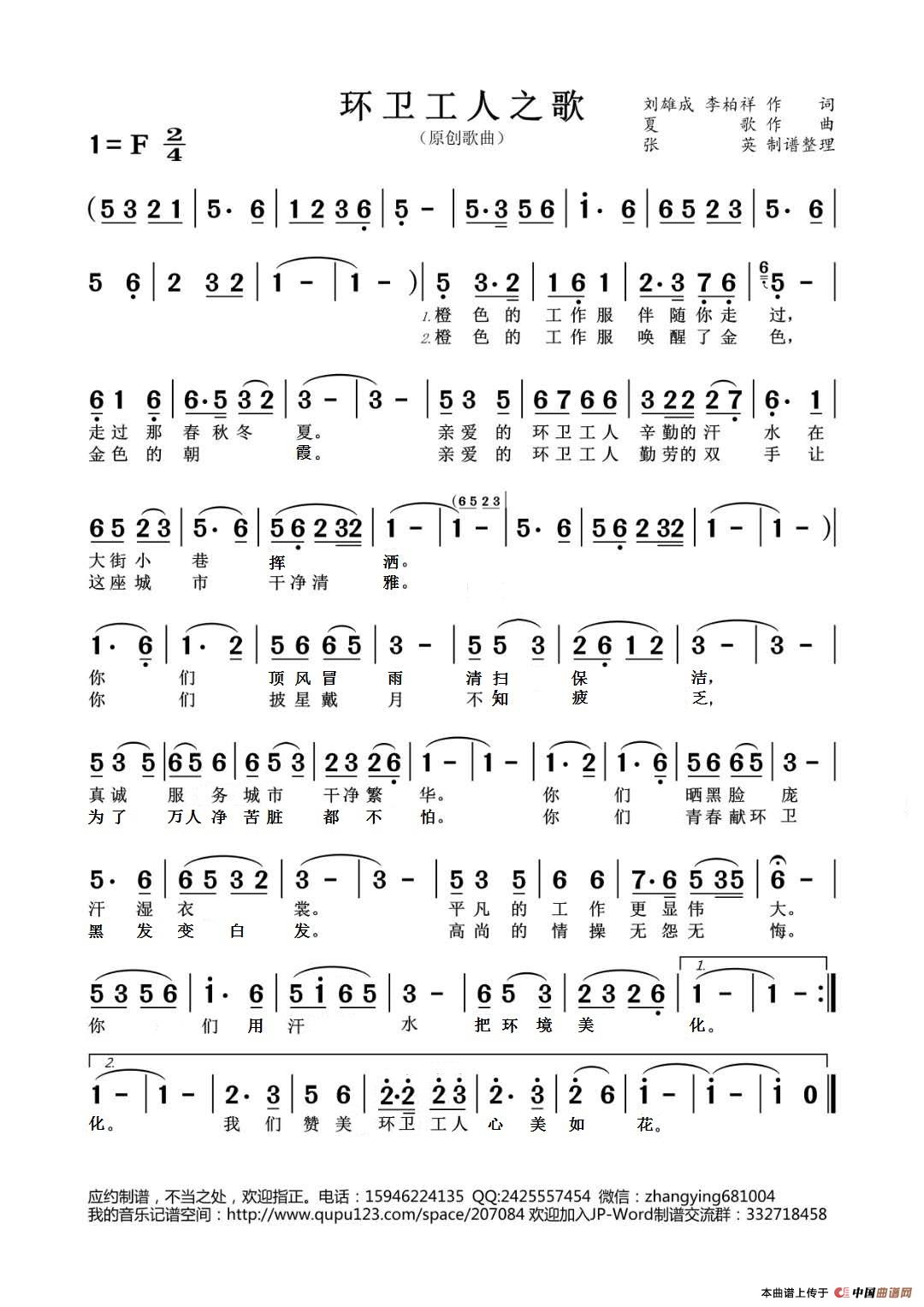 当前位置: 首页 谱友园地 谱友上传 环卫工人之歌