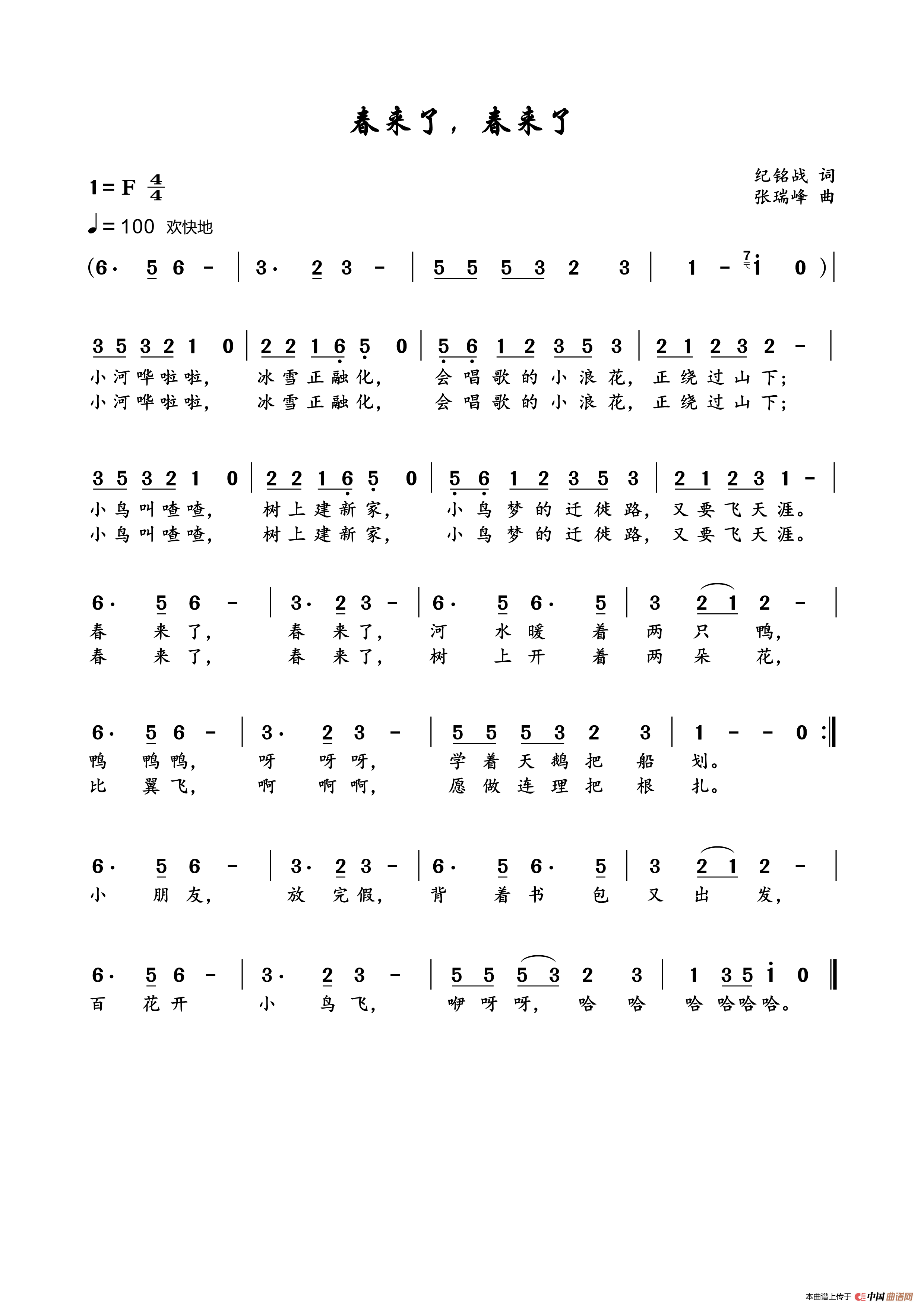 关于《春来了春来了》曲谱的评论