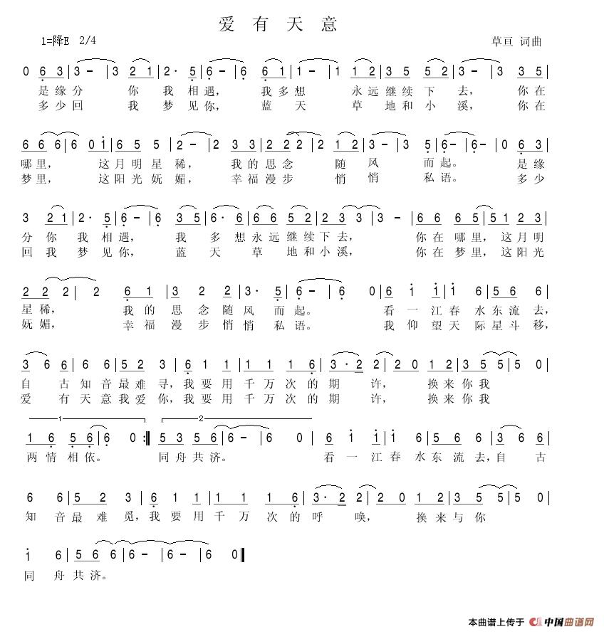 关于《爱有天意》曲谱的评论