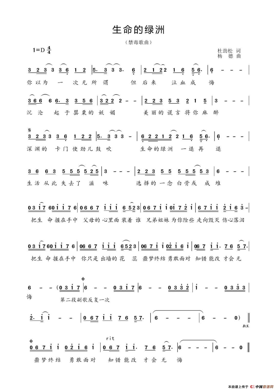 关于《生命的绿洲》曲谱的评论