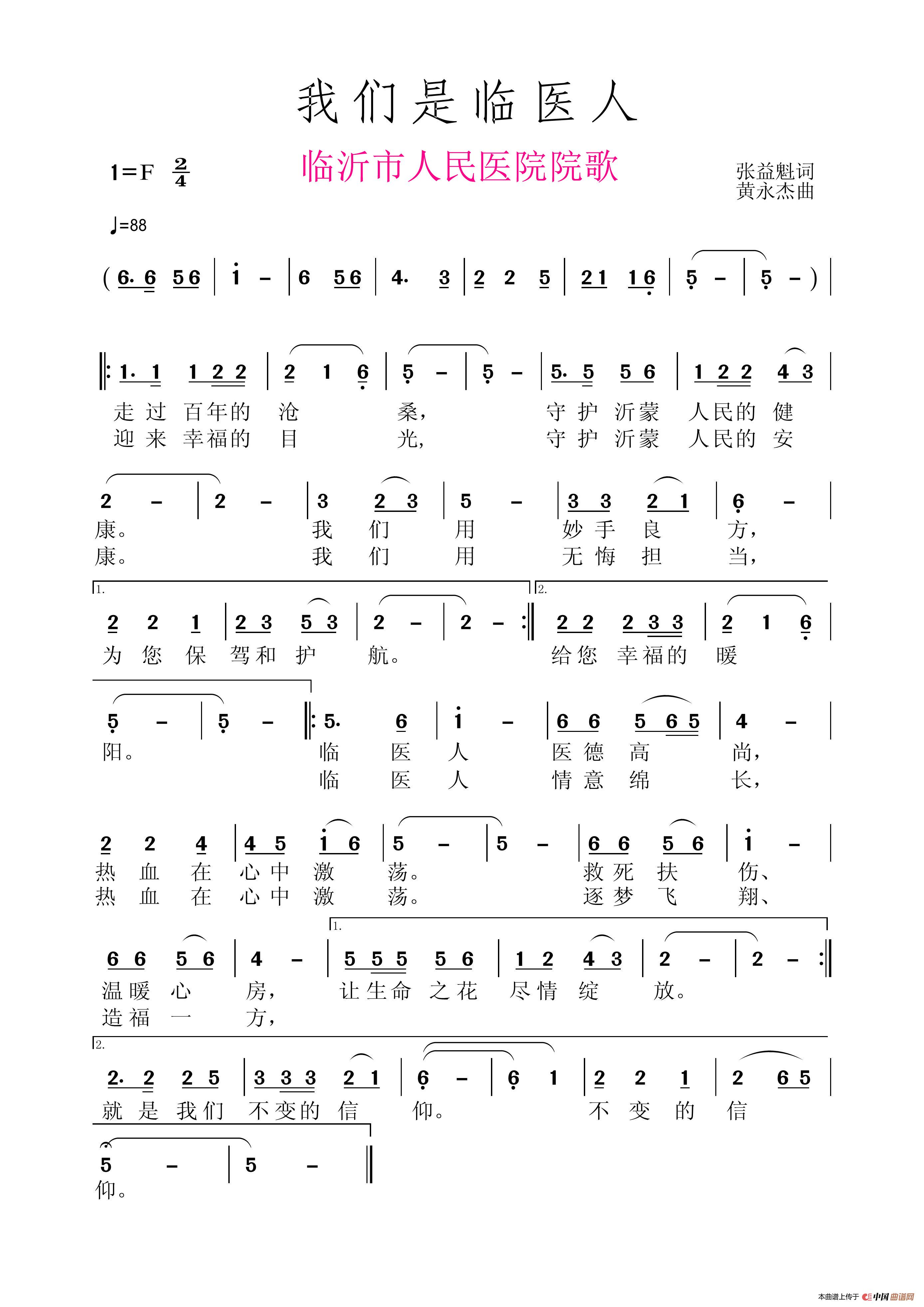 关于《我们是临医人》曲谱的评论