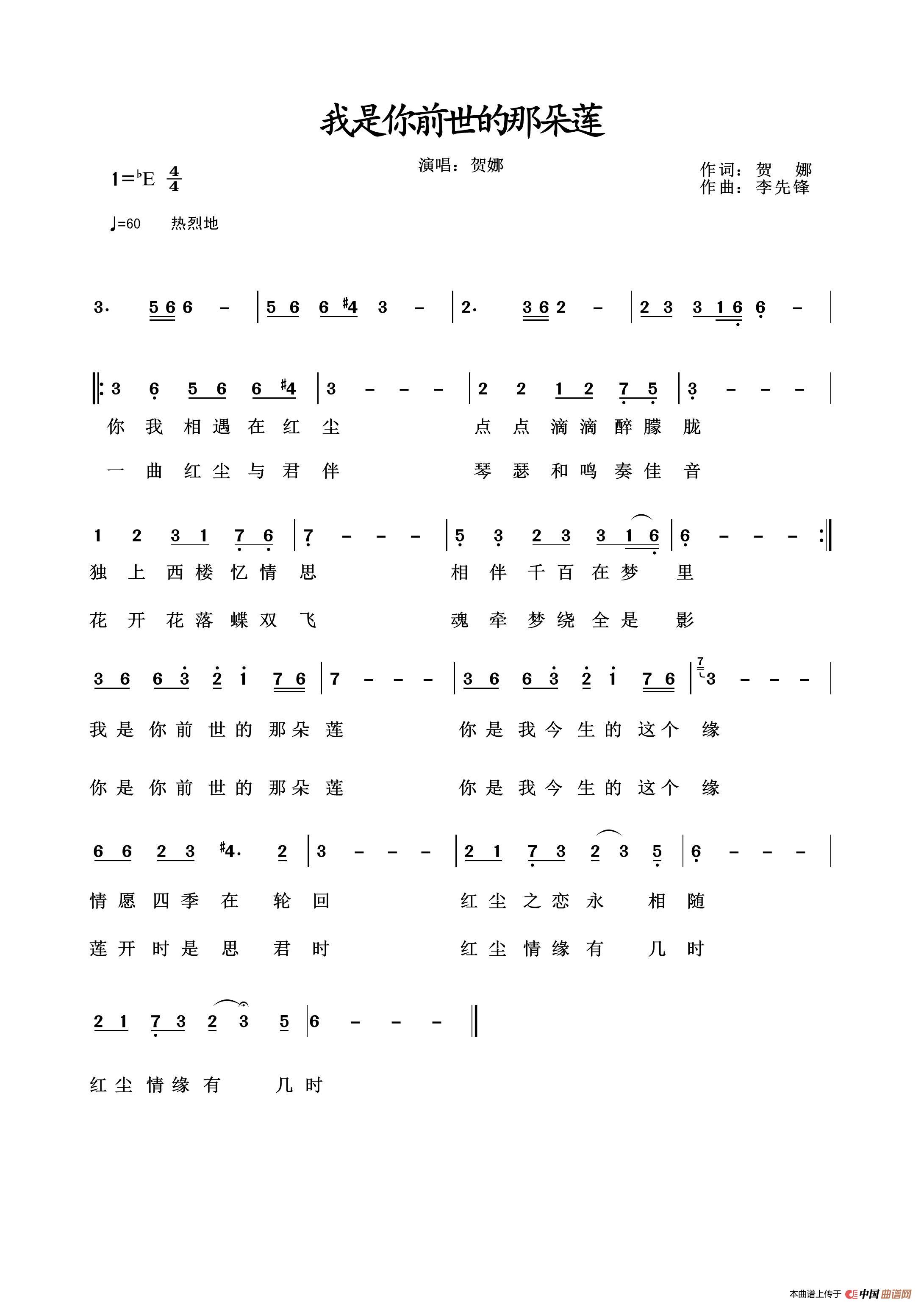 关于《我是你前世的那朵莲》曲谱的评论