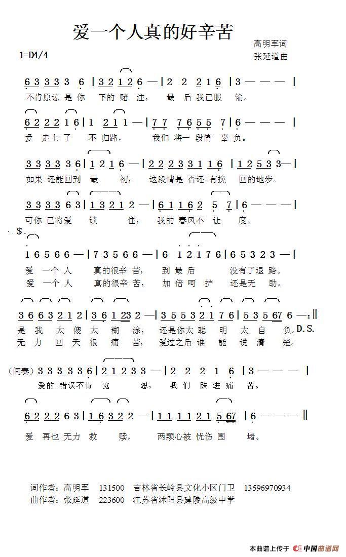关于《爱一个人真的很辛苦》曲谱的评论