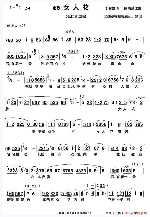 关于《京歌《女人花》张佳春演唱谱》曲谱的评论