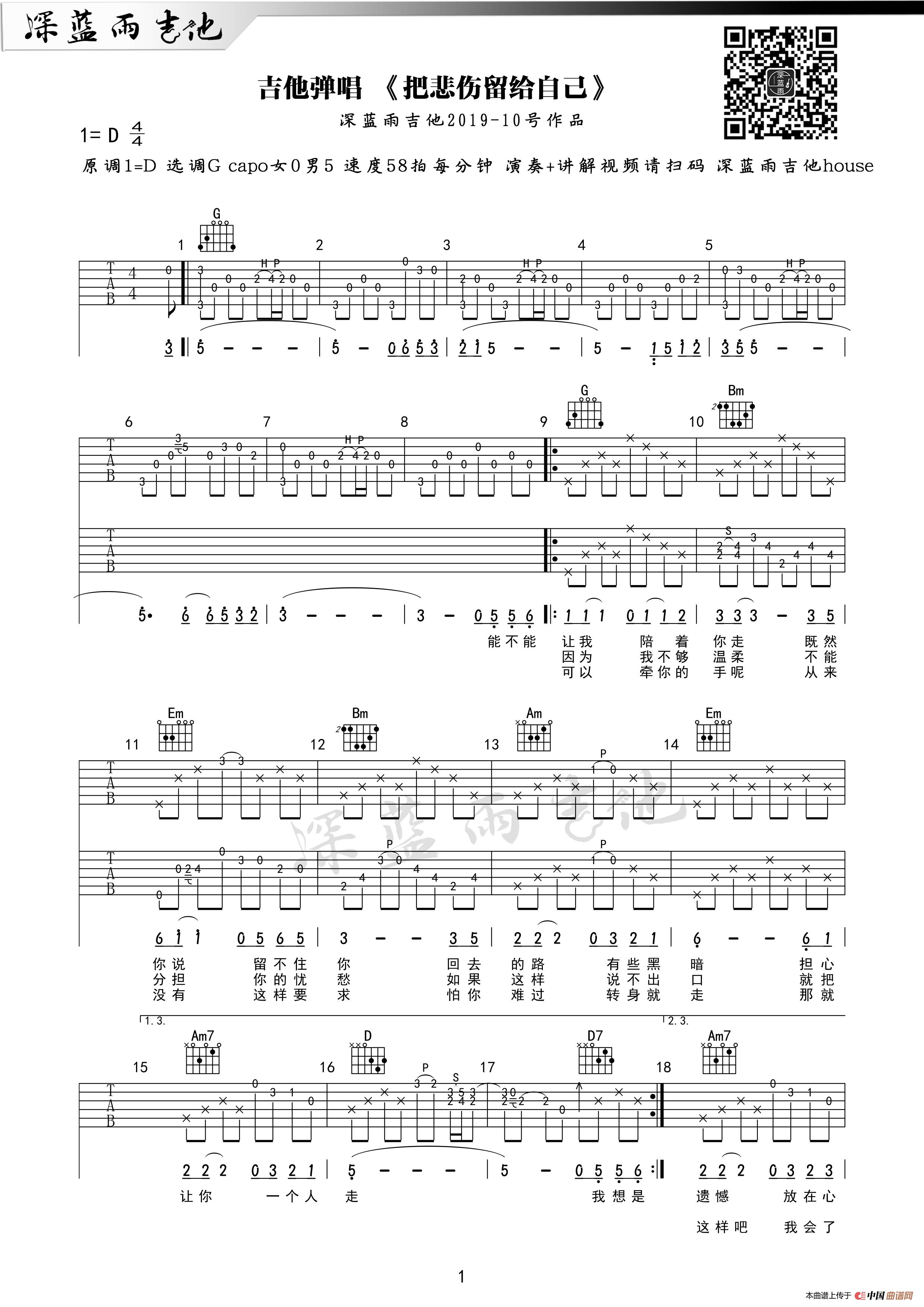 演唱(奏):深蓝雨 来源:深蓝雨吉他 上传:半壶酒