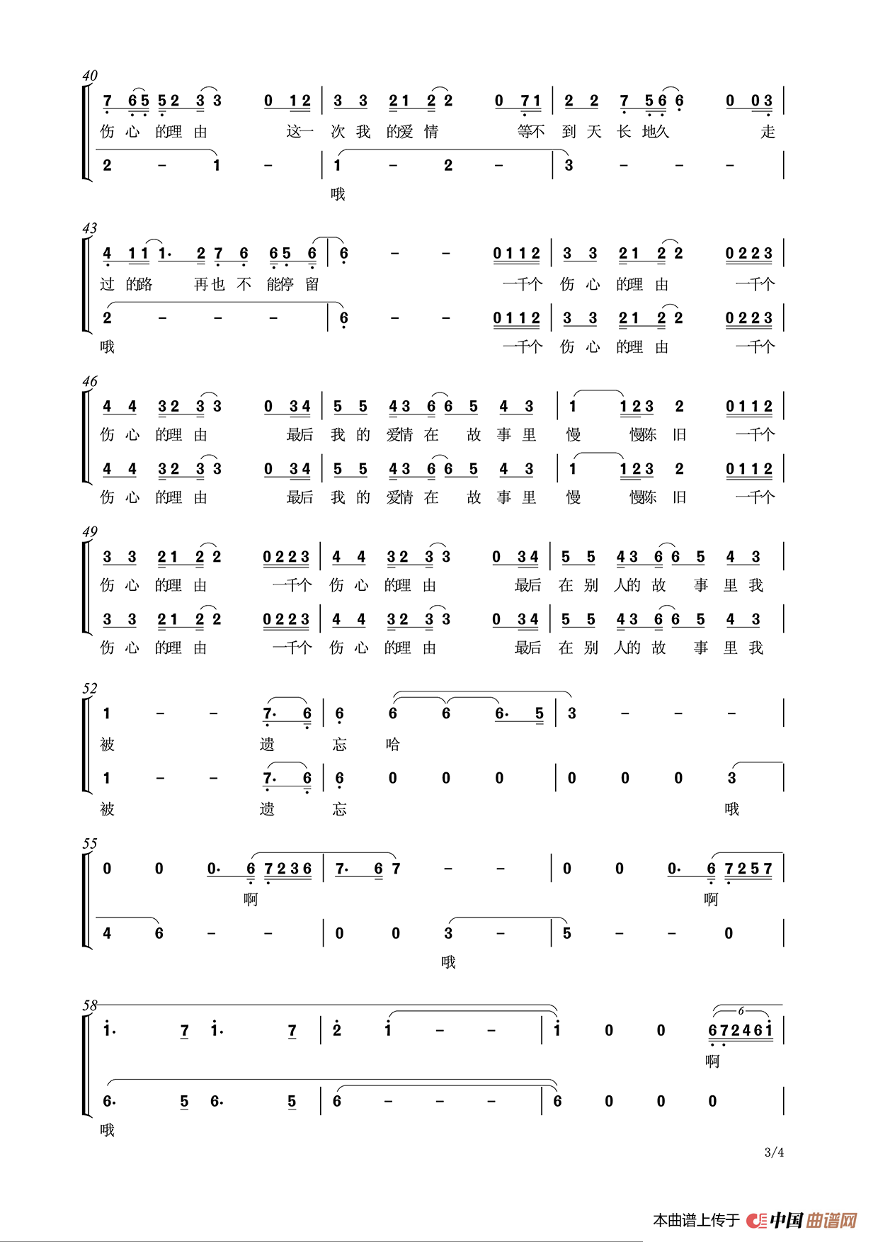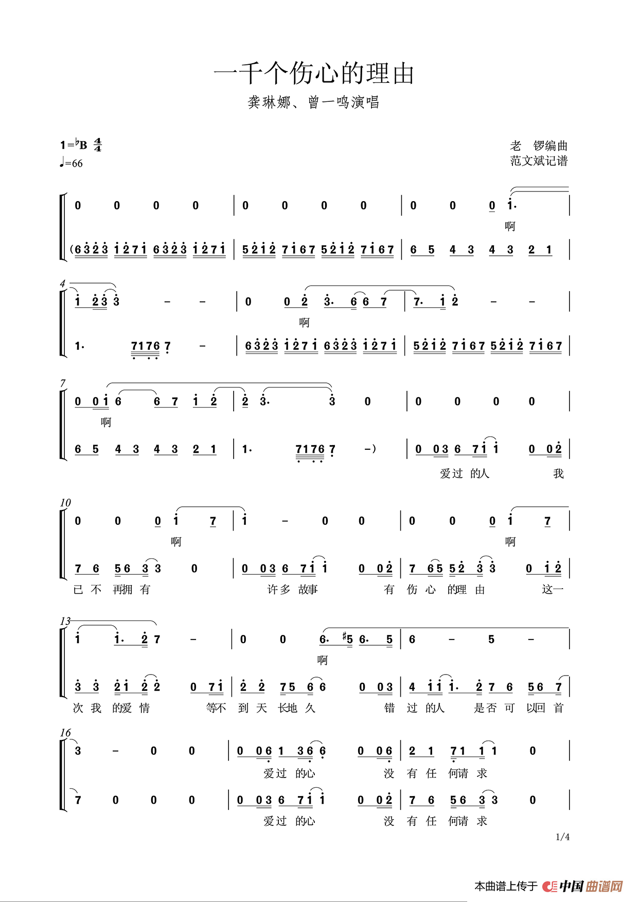 关于《一千个伤心的理由》曲谱的评论