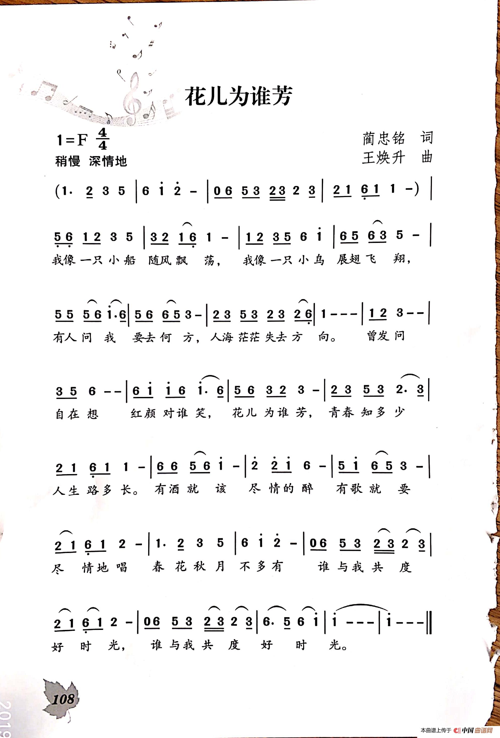 关于《花儿为谁芳》曲谱的评论