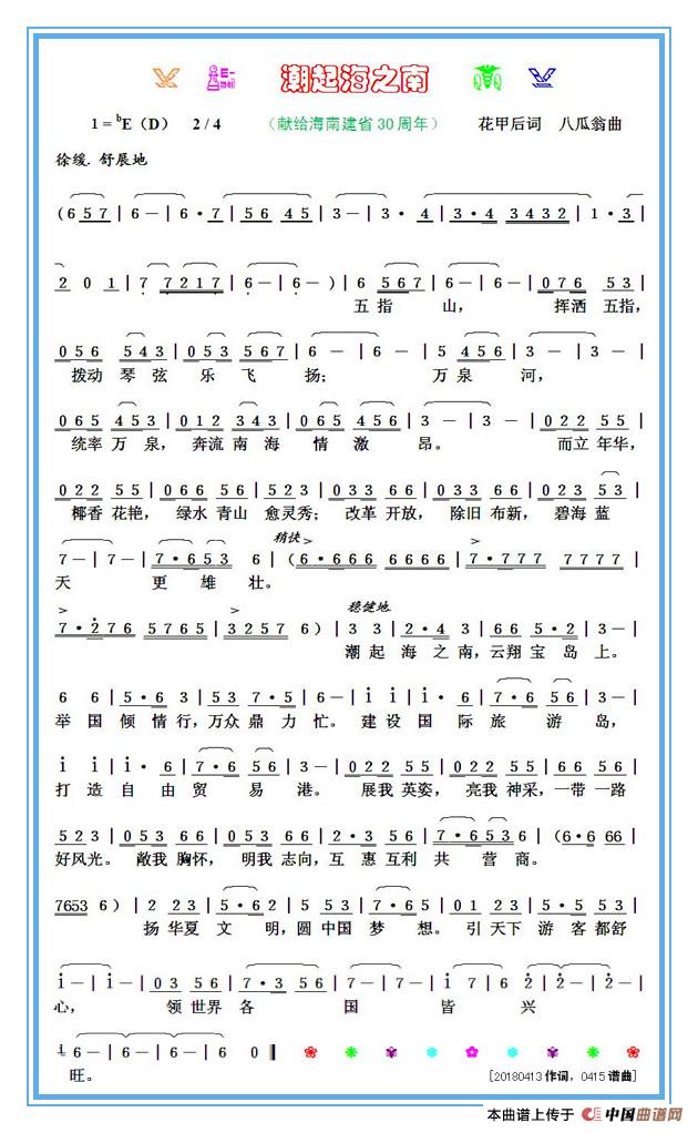 关于《潮起海之南》曲谱的评论