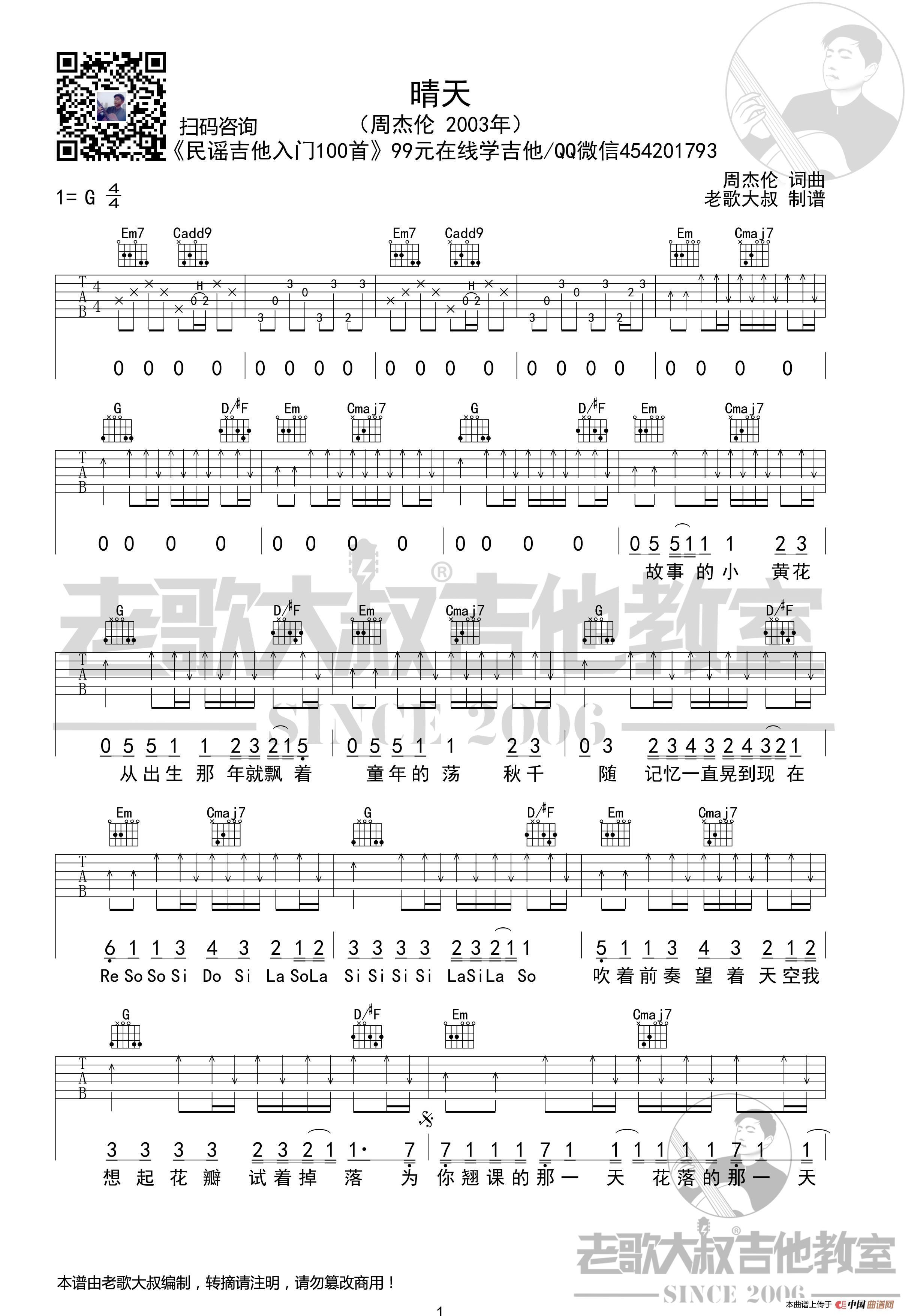 周杰伦《晴天》考级版 老歌大叔吉他教室出品