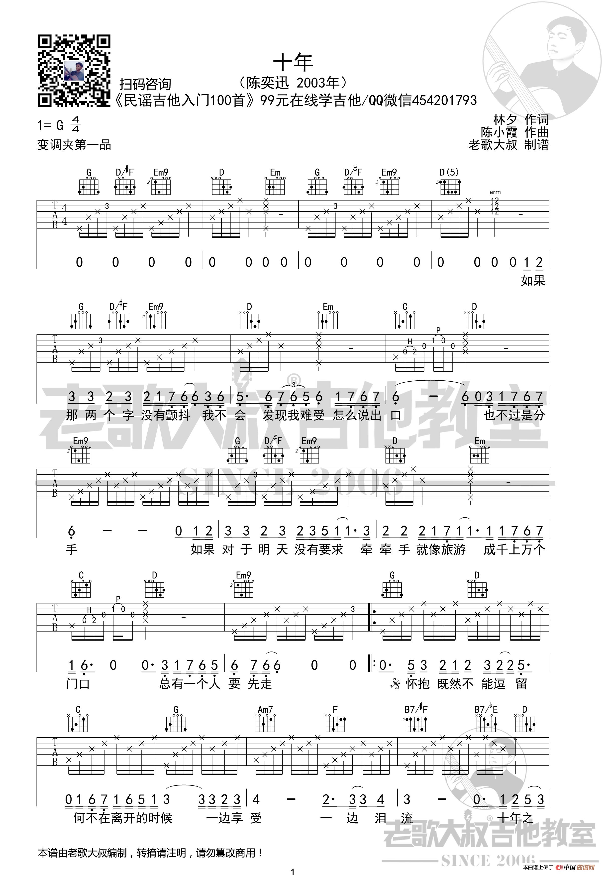 陈奕迅《十年》考级版 老歌大叔吉他教室出品