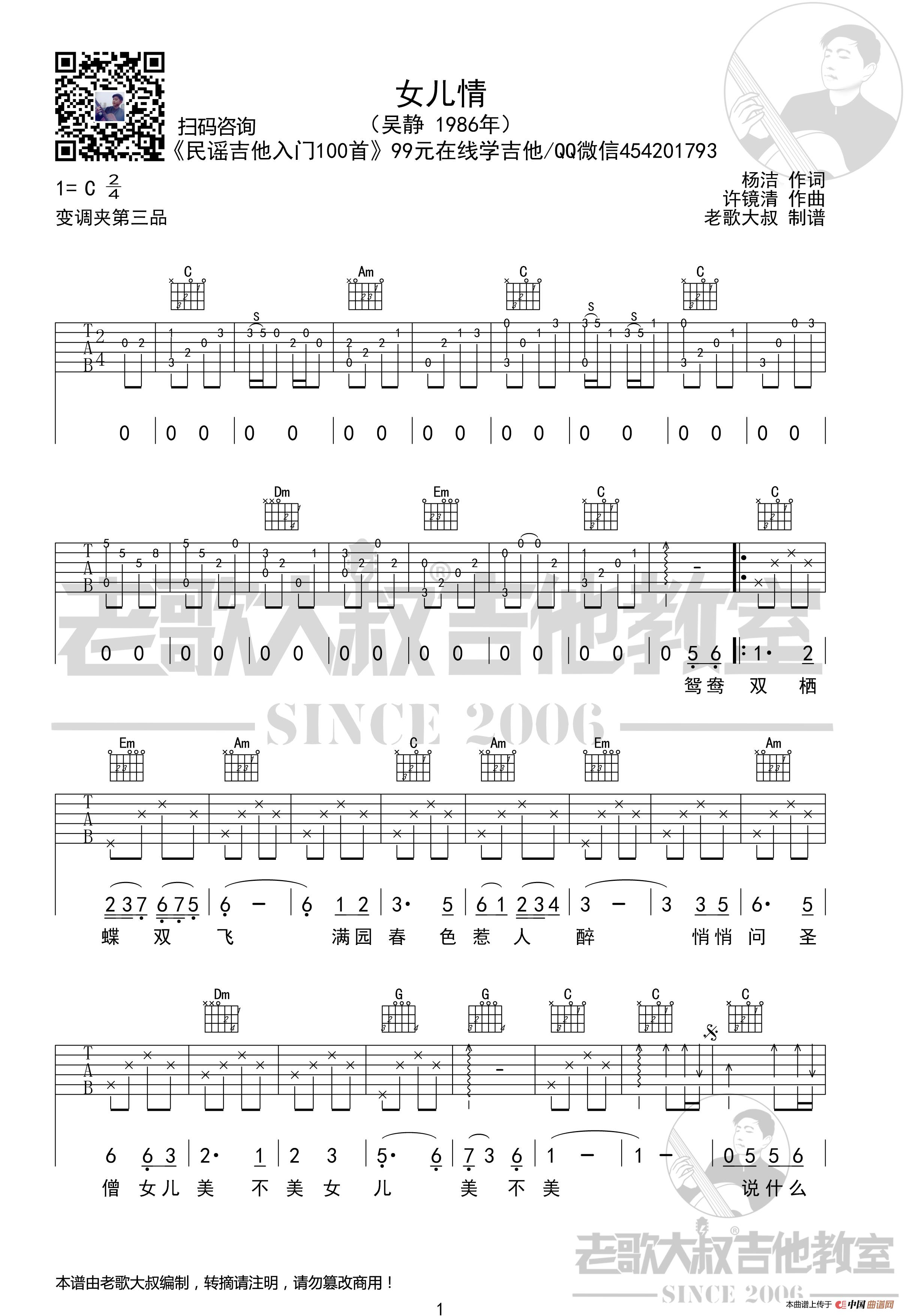 西游记《女儿情》前奏版超清谱 老歌大叔吉他教室出品