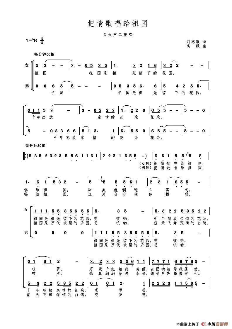 关于《把情歌唱给祖国(男女声二重唱))》曲谱的评论