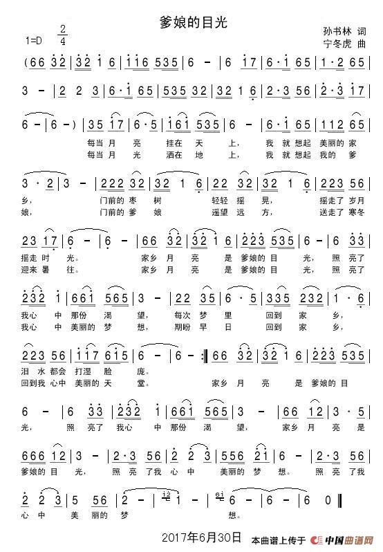 关于《爹娘的目光》曲谱的评论
