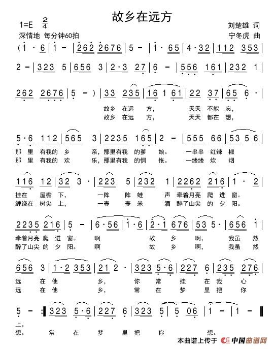 关于《故乡在远方》曲谱的评论