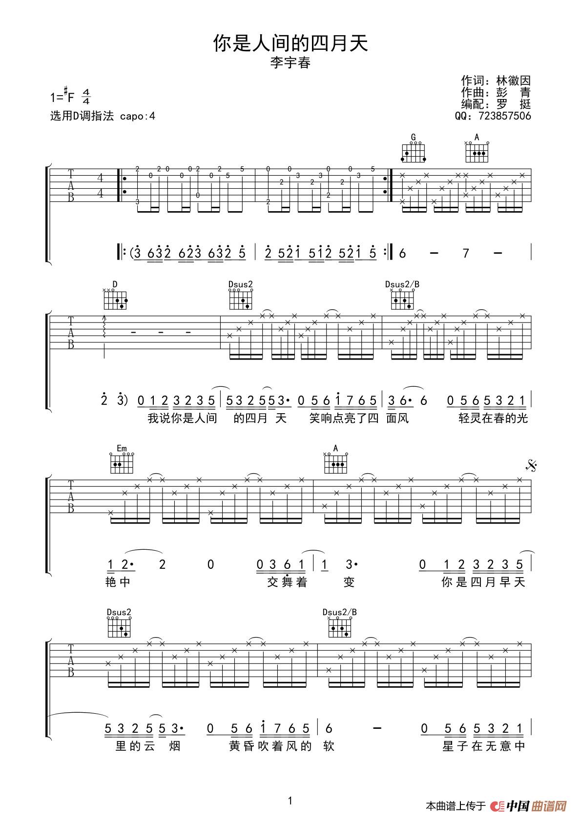 关于《你是人间的四月天 - 李宇春》曲谱的评论