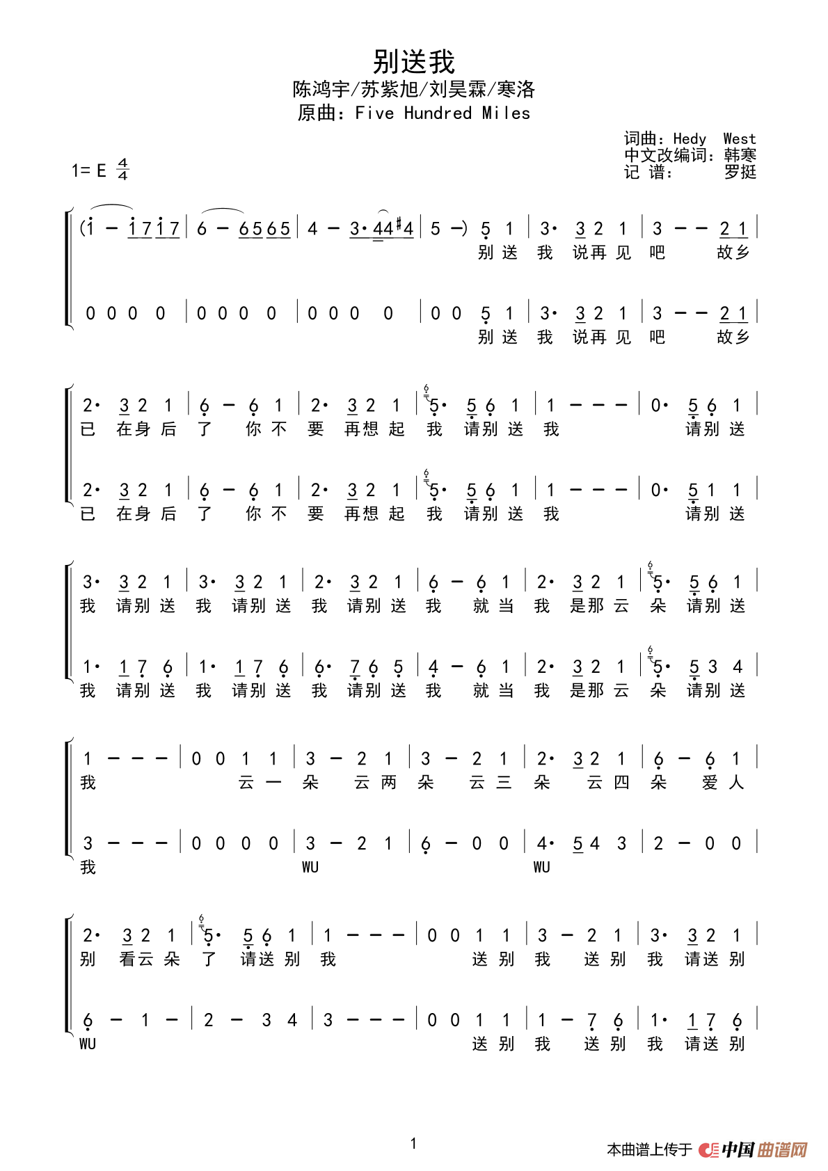 提示:在曲谱图片上单击右键,选择“图片另存为...”即可将曲谱保存到您的电脑中,打印时候可将图片插入到WORD中,调整合适大小打印即可。