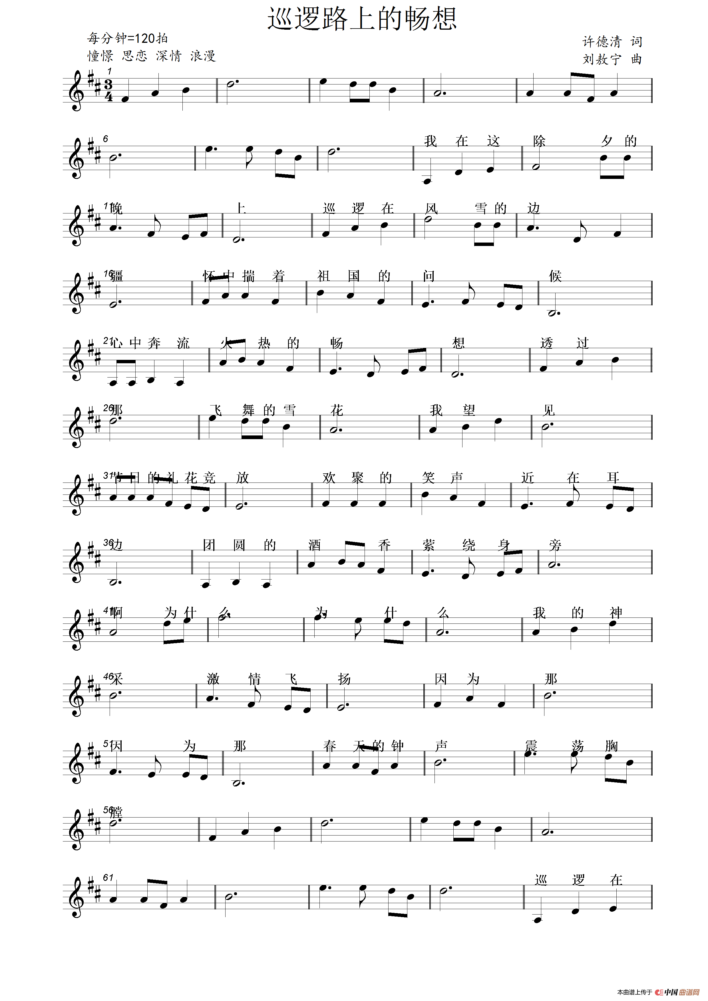 提示:在曲谱图片上单击右键,选择“图片另存为...”即可将曲谱保存到您的电脑中,打印时候可将图片插入到WORD中,调整合适大小打印即可。