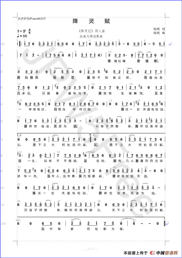 提示:在曲谱图片上单击右键,选择“图片另存为...”即可将曲谱保存到您的电脑中,打印时候可将图片插入到WORD中,调整合适大小打印即可。