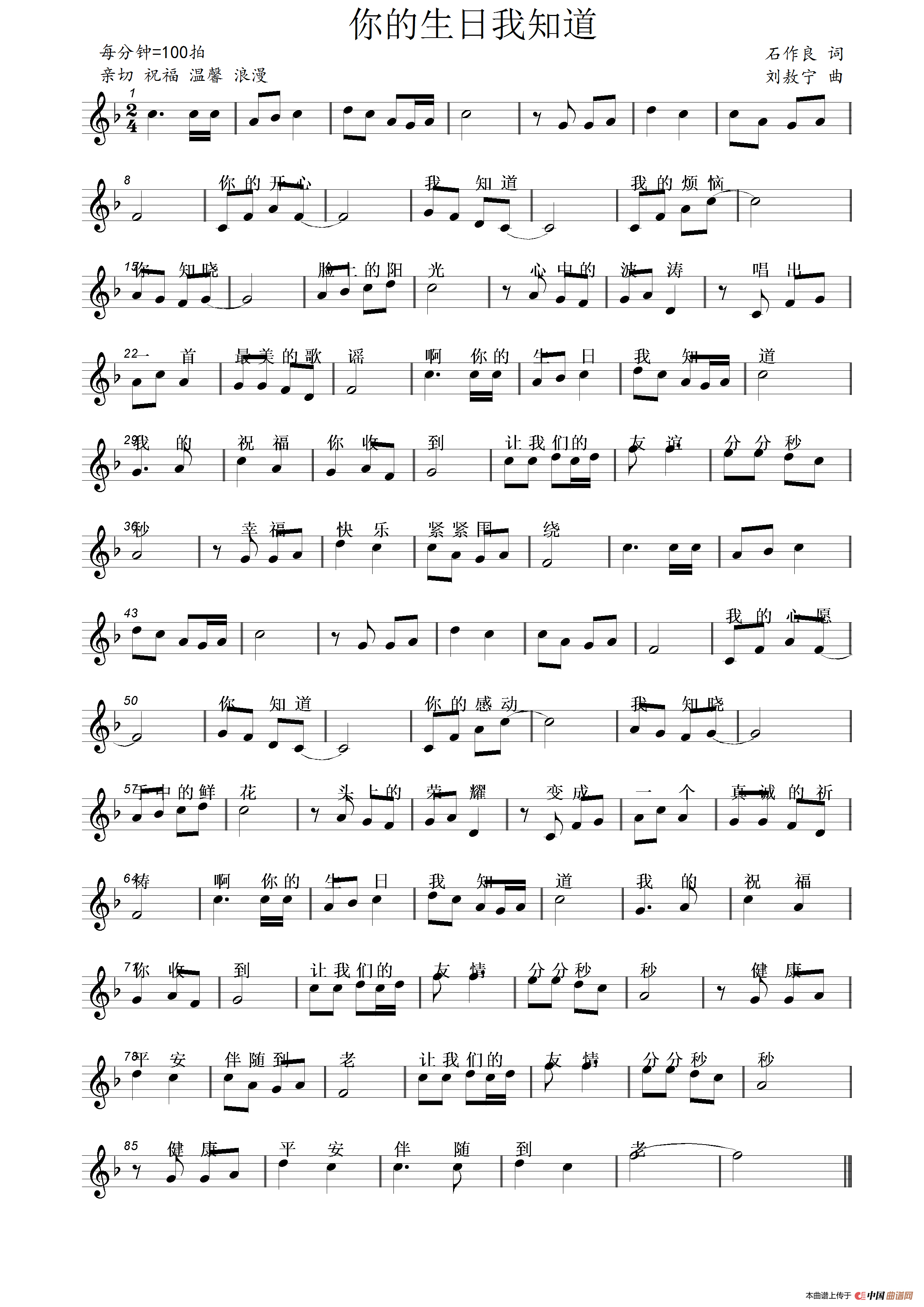 提示:在曲谱图片上单击右键,选择“图片另存为...”即可将曲谱保存到您的电脑中,打印时候可将图片插入到WORD中,调整合适大小打印即可。