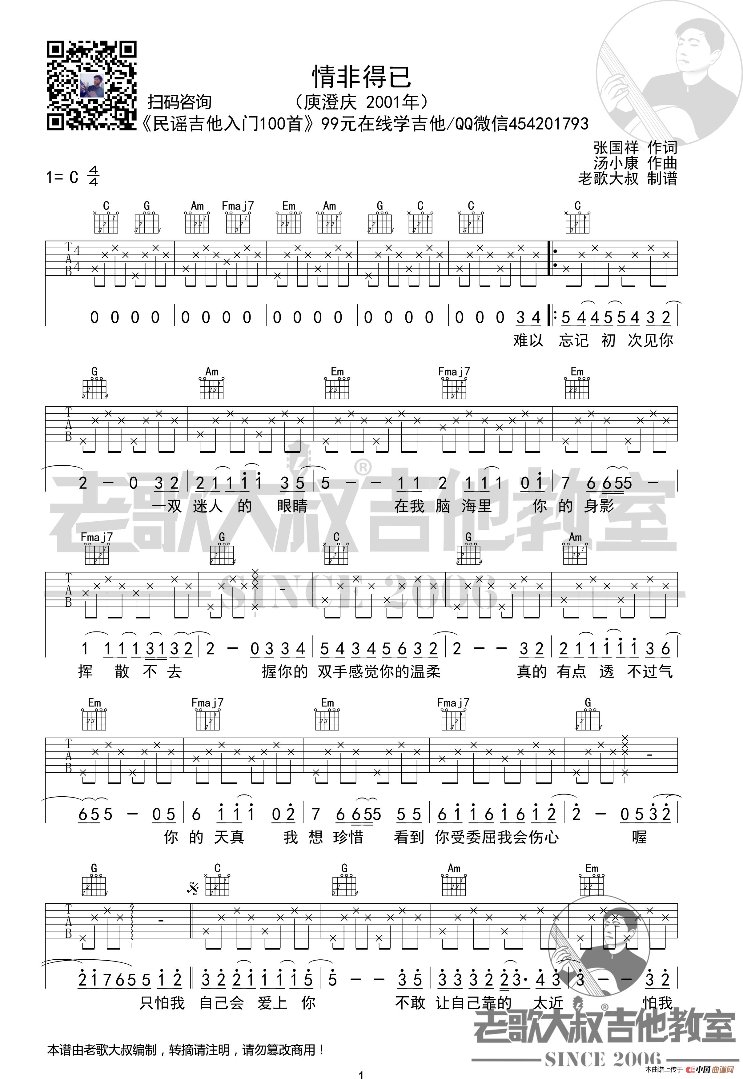 庾澄庆《情非得已》分解版超清谱 老歌大叔吉他教室出品