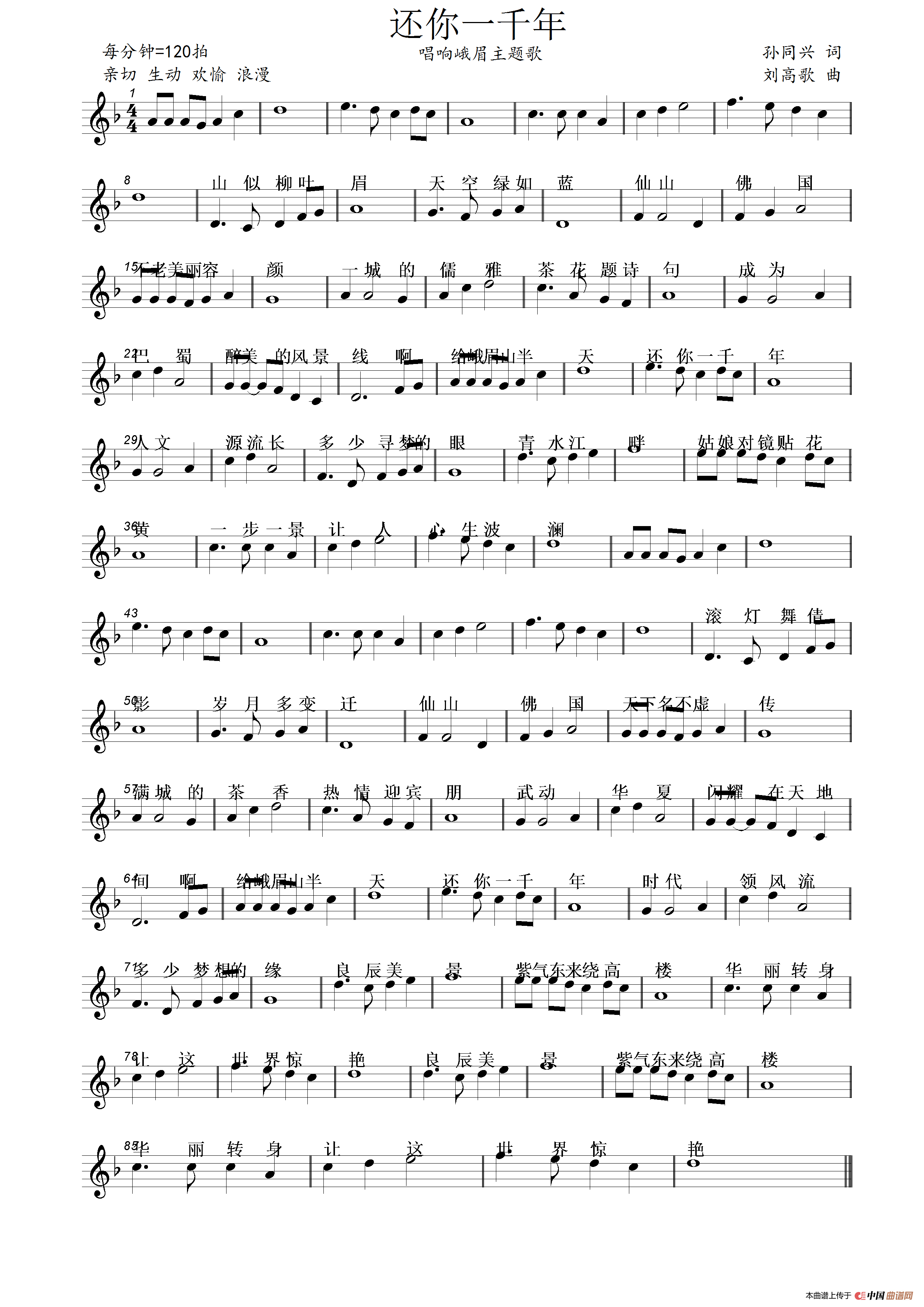 提示:在曲谱图片上单击右键,选择“图片另存为...”即可将曲谱保存到您的电脑中,打印时候可将图片插入到WORD中,调整合适大小打印即可。
