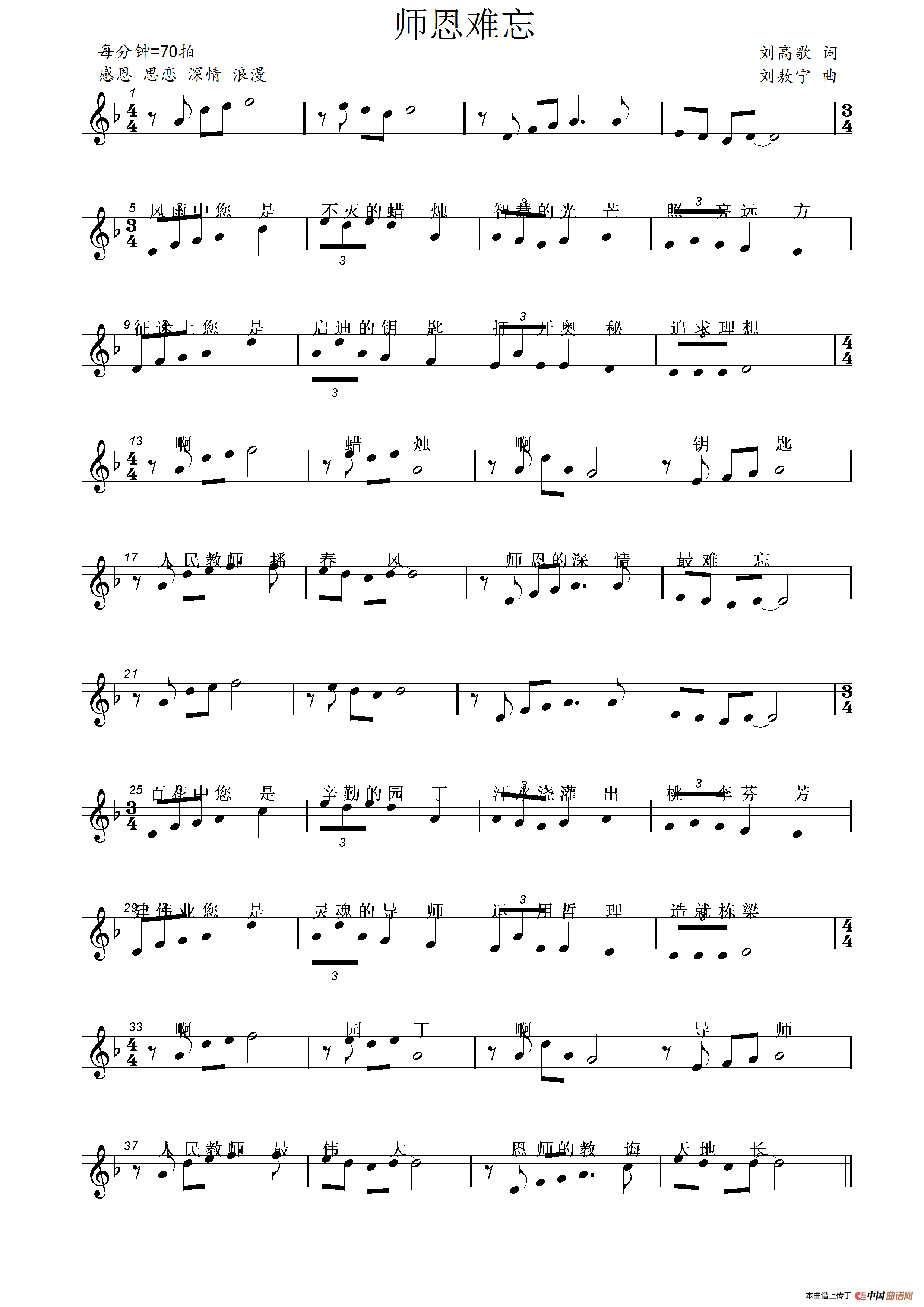 师恩难忘(刘高歌词 刘敖宁曲)(1)_原文件名:师恩难忘(刘高歌词 刘敖宁曲)五线谱.png
