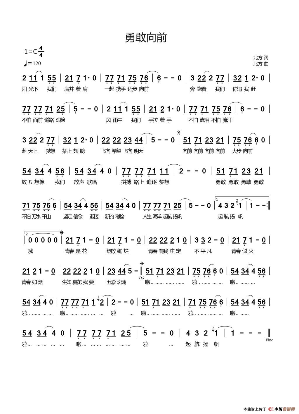 关于《勇敢向前》曲谱的评论