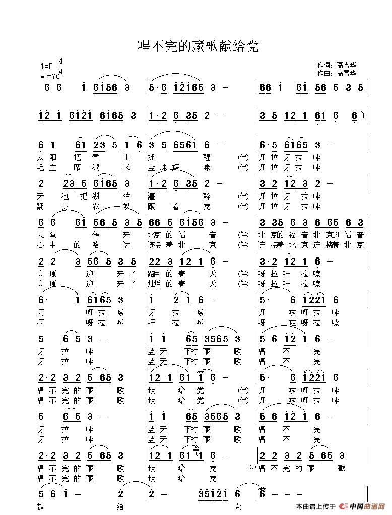 关于《唱不完的藏歌献给党》曲谱的评论