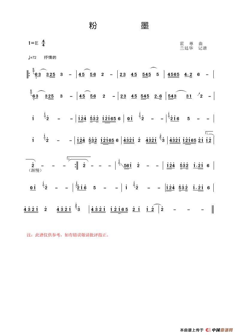 关于《粉墨》曲谱的评论