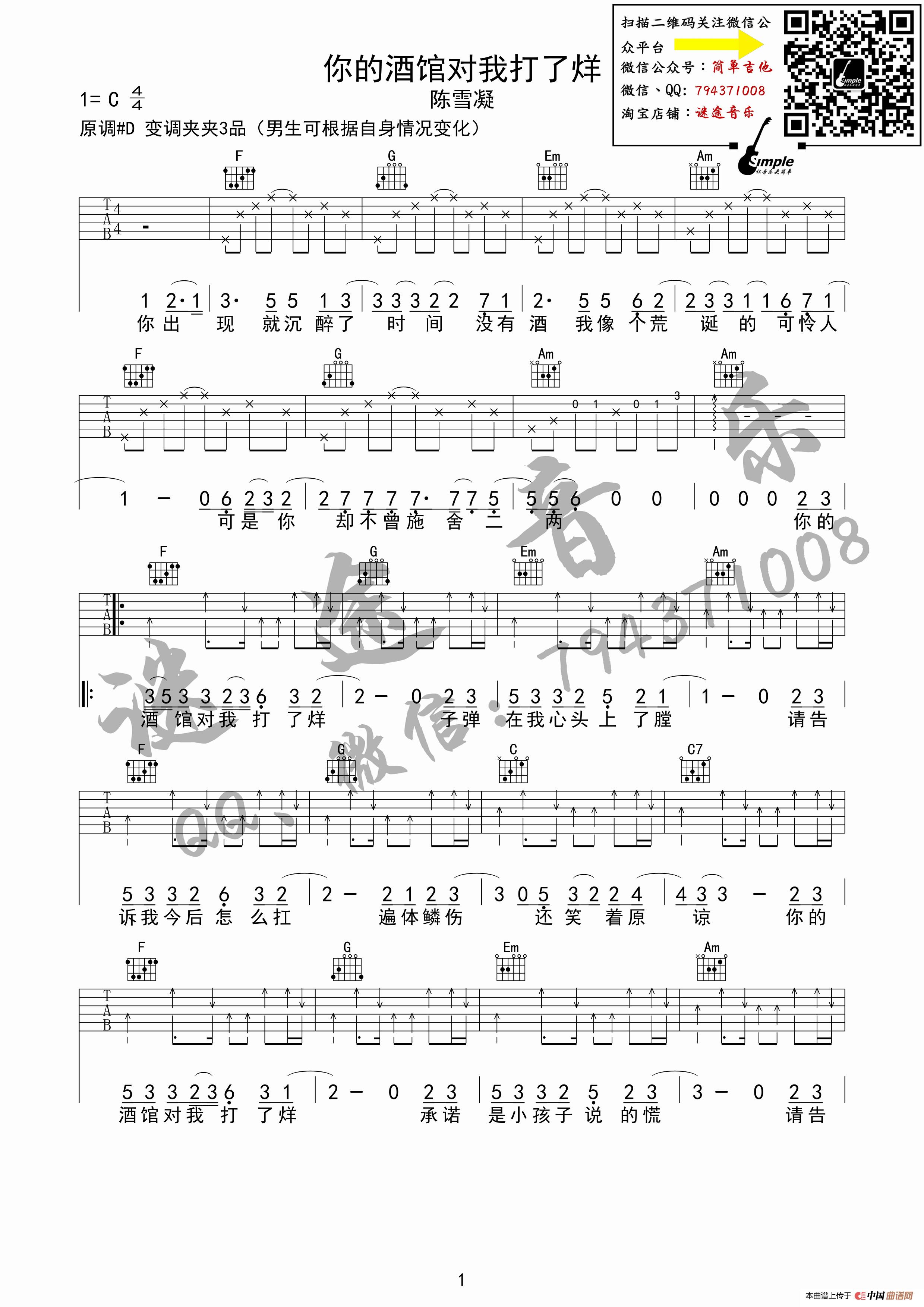 关于《你的酒馆对我打了烊-陈雪凝谜途音乐完美弹唱版吉他谱》曲谱的评论