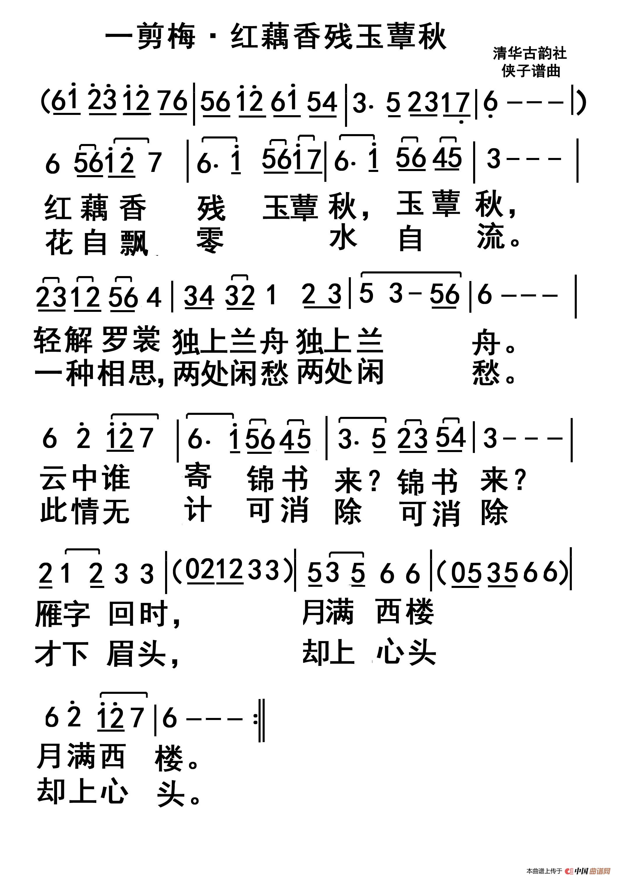 关于《李清照一剪梅》曲谱的评论