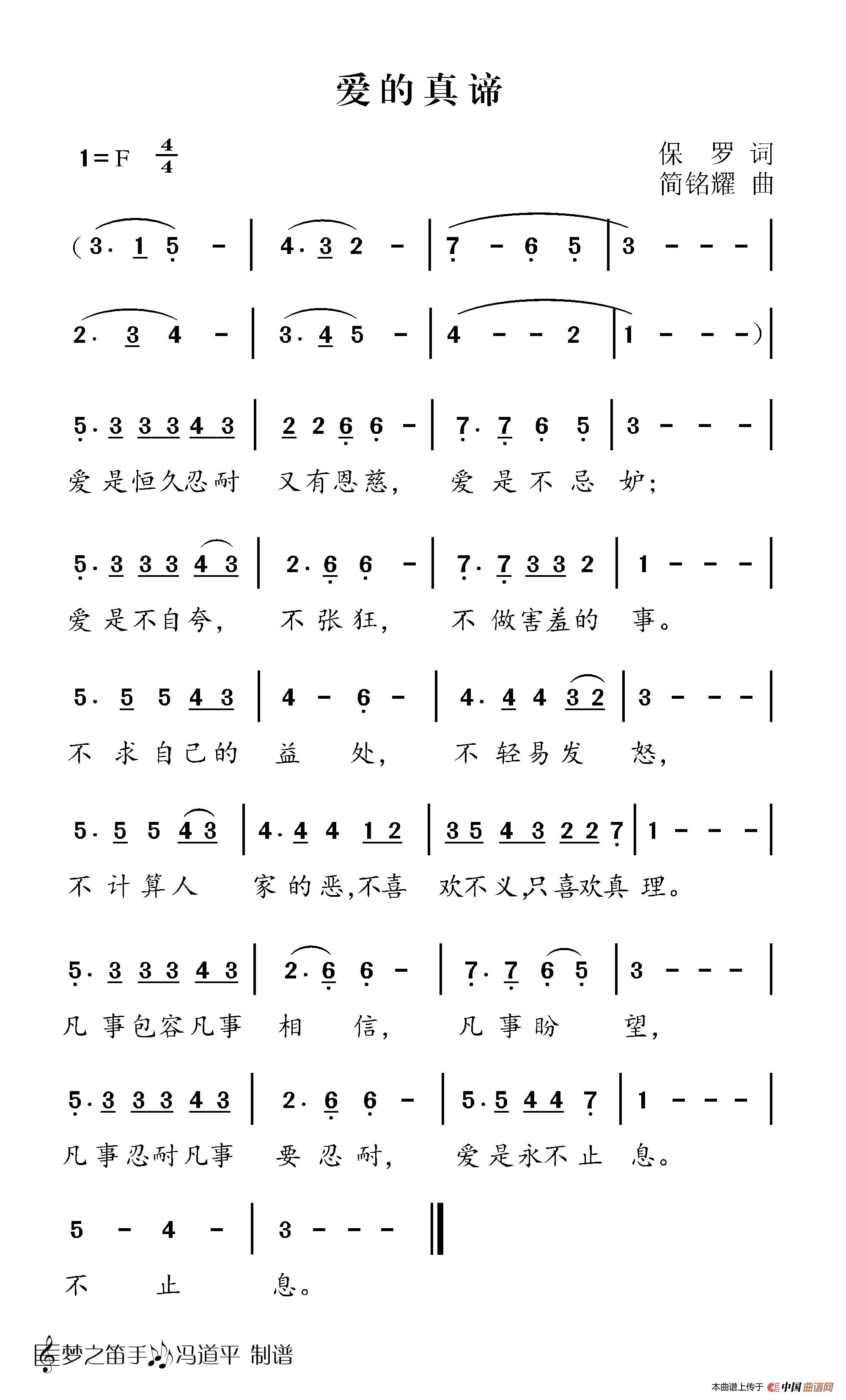 作词:保罗 作曲:简铭耀 来源:冯道平制谱 上传:冯道平