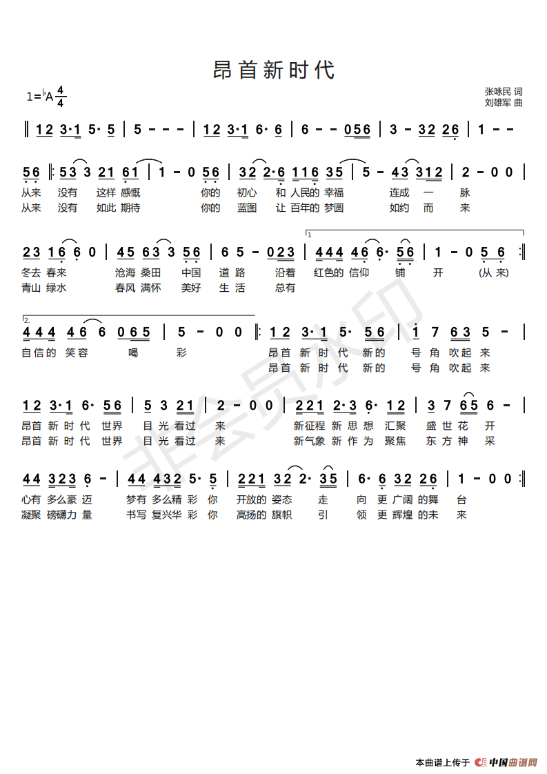 关于《昂首新时代》曲谱的评论