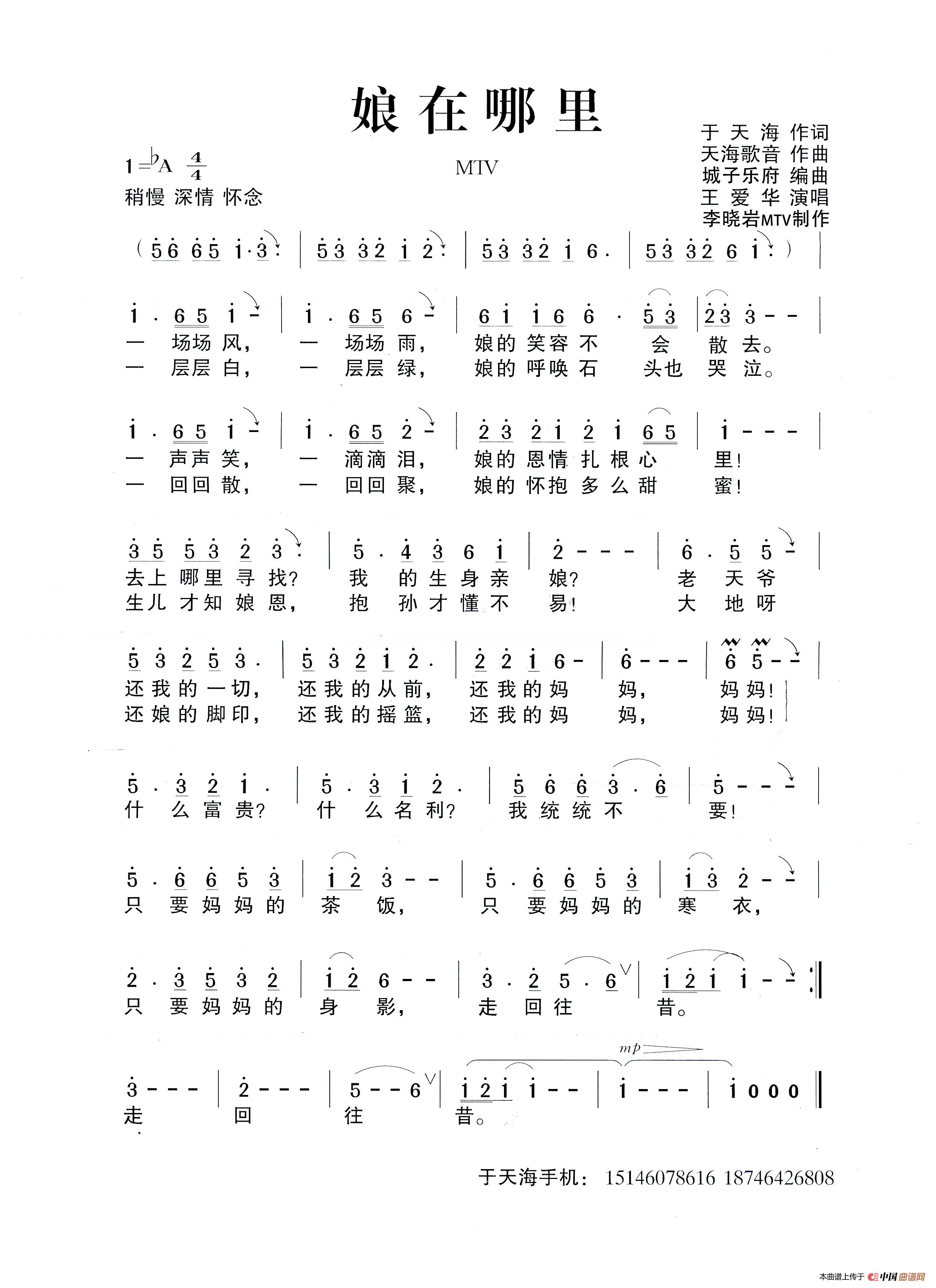 关于《娘在哪里》曲谱的评论