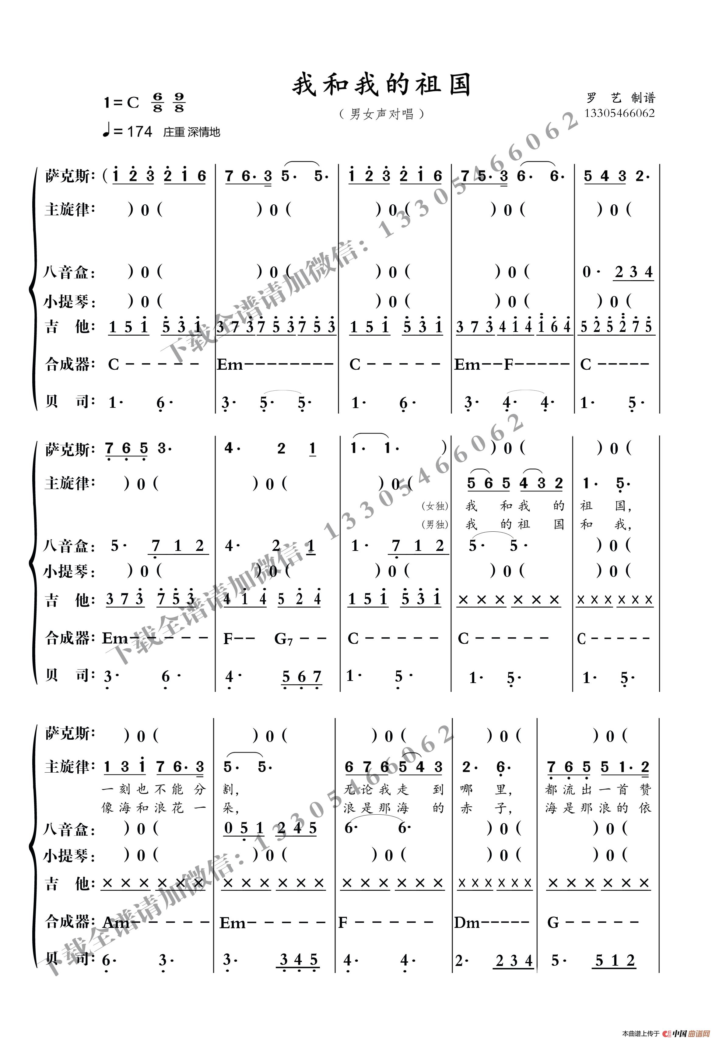 提示:在曲谱图片上单击右键,选择"图片另存为..."即可将曲谱保存到您的电脑中,打印时候可将图片插入到WORD中,调整合适大小打印即可。