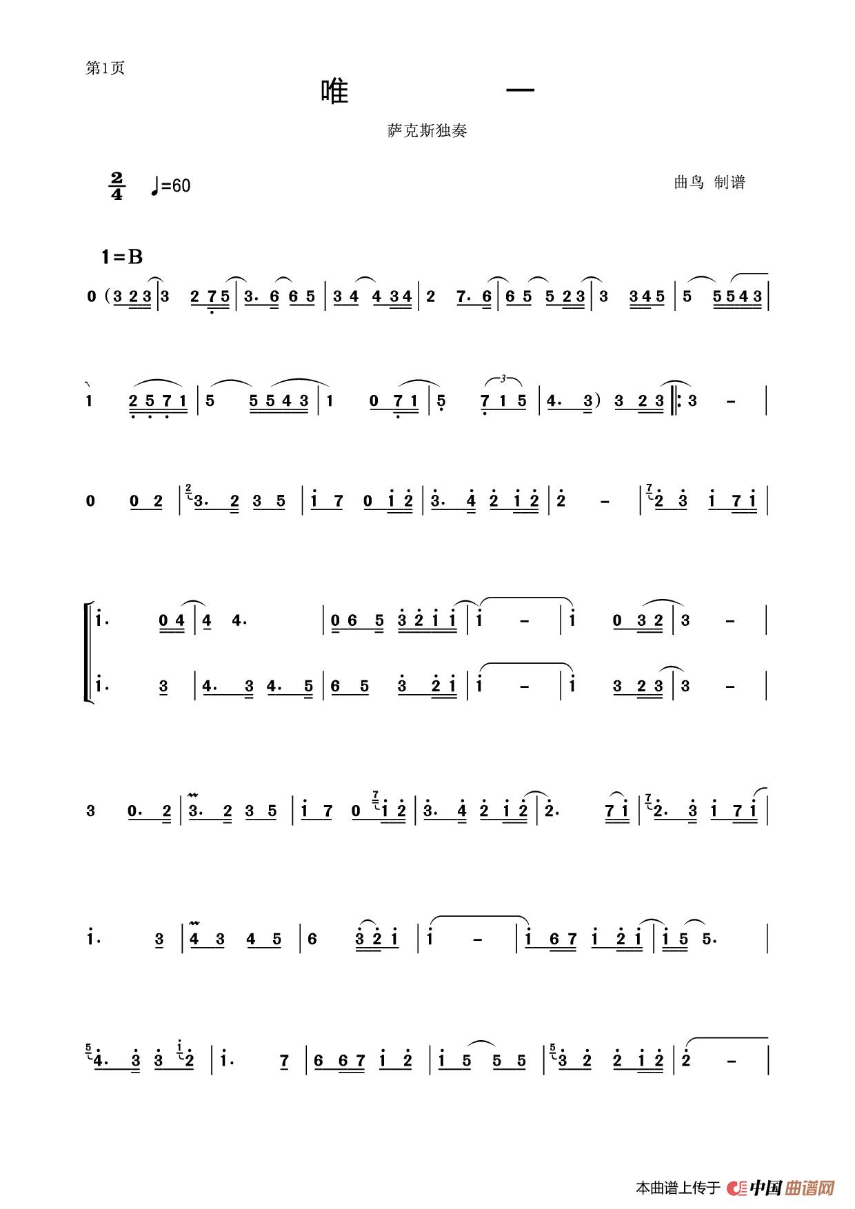 关于《唯一 萨克斯曲》曲谱的评论