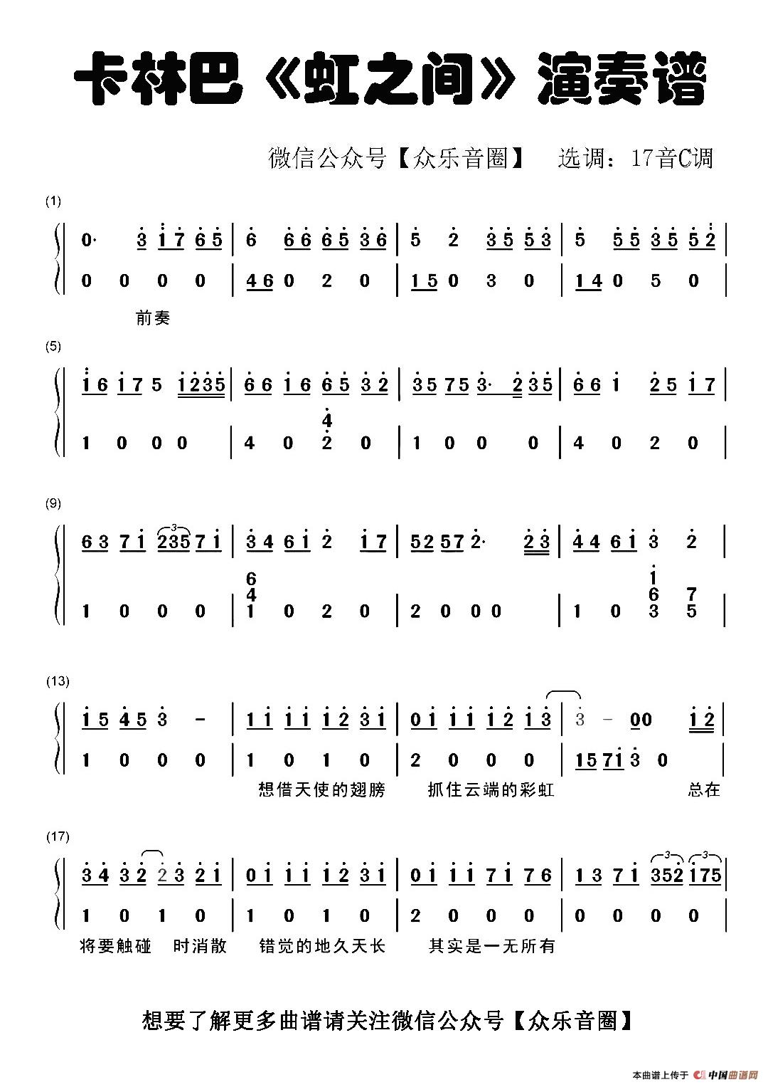 虹之间(拇指琴卡林巴琴和弦简谱)