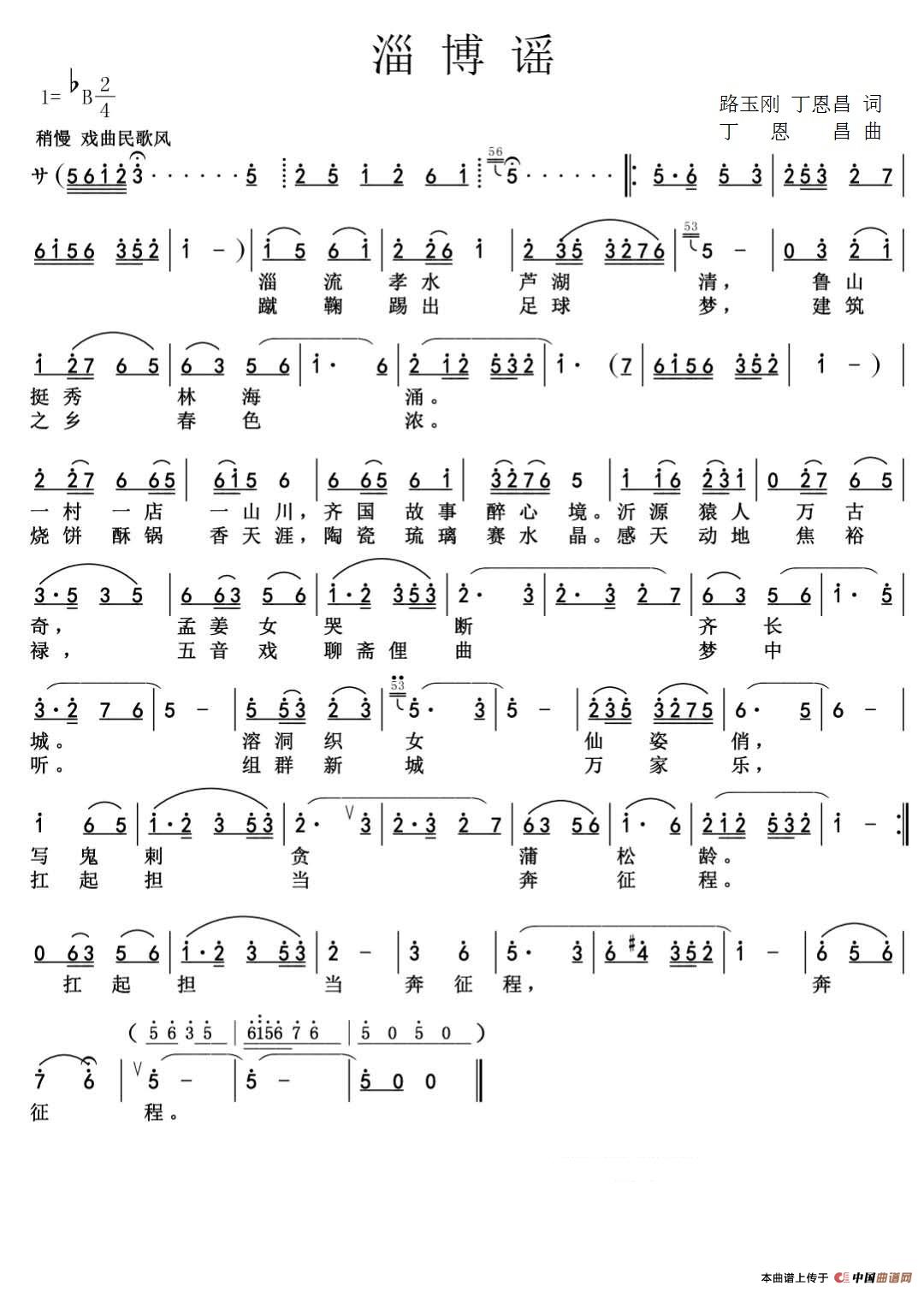 关于《淄博谣》曲谱的评论