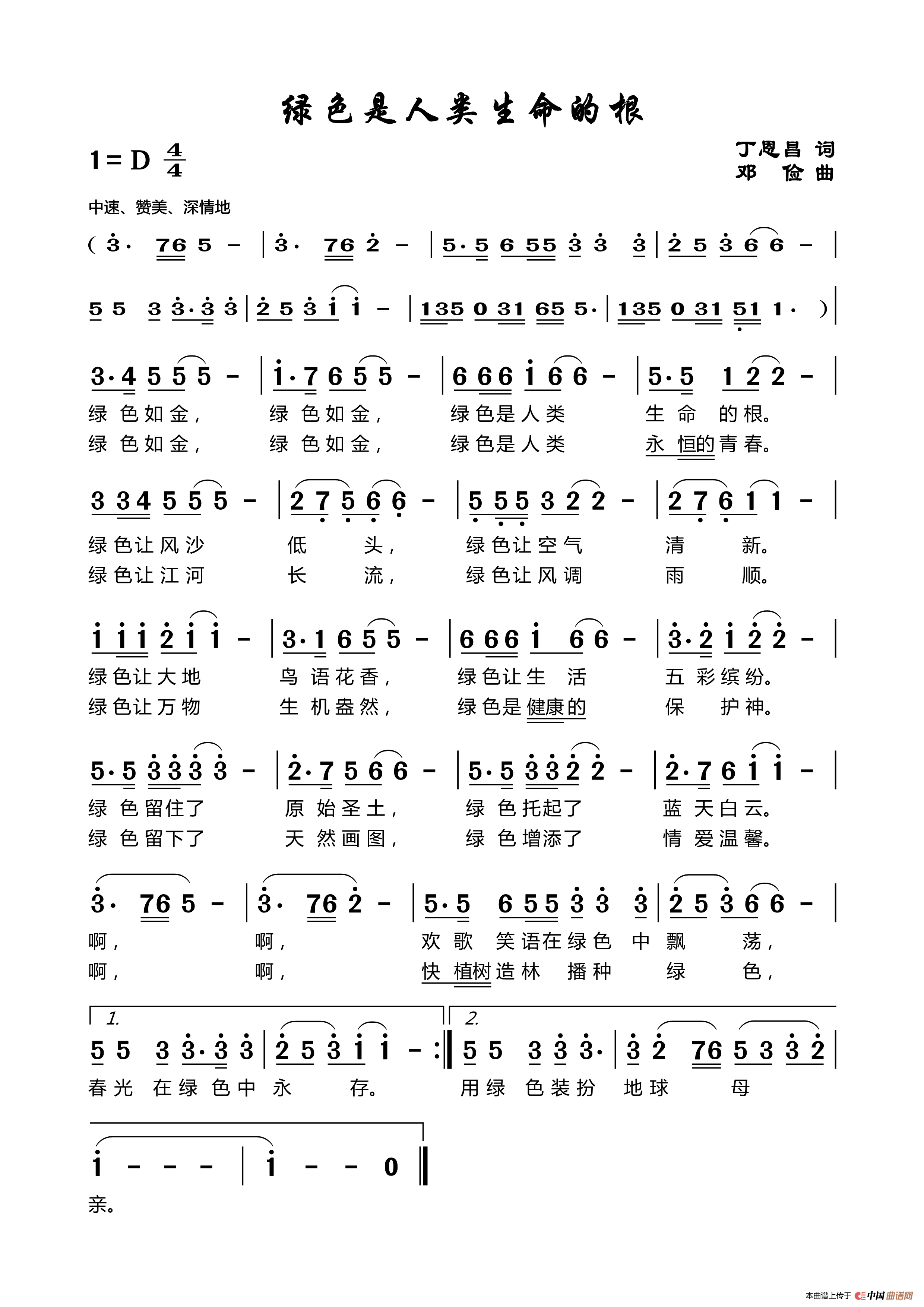 关于《绿色是人类生命的根》曲谱的评论