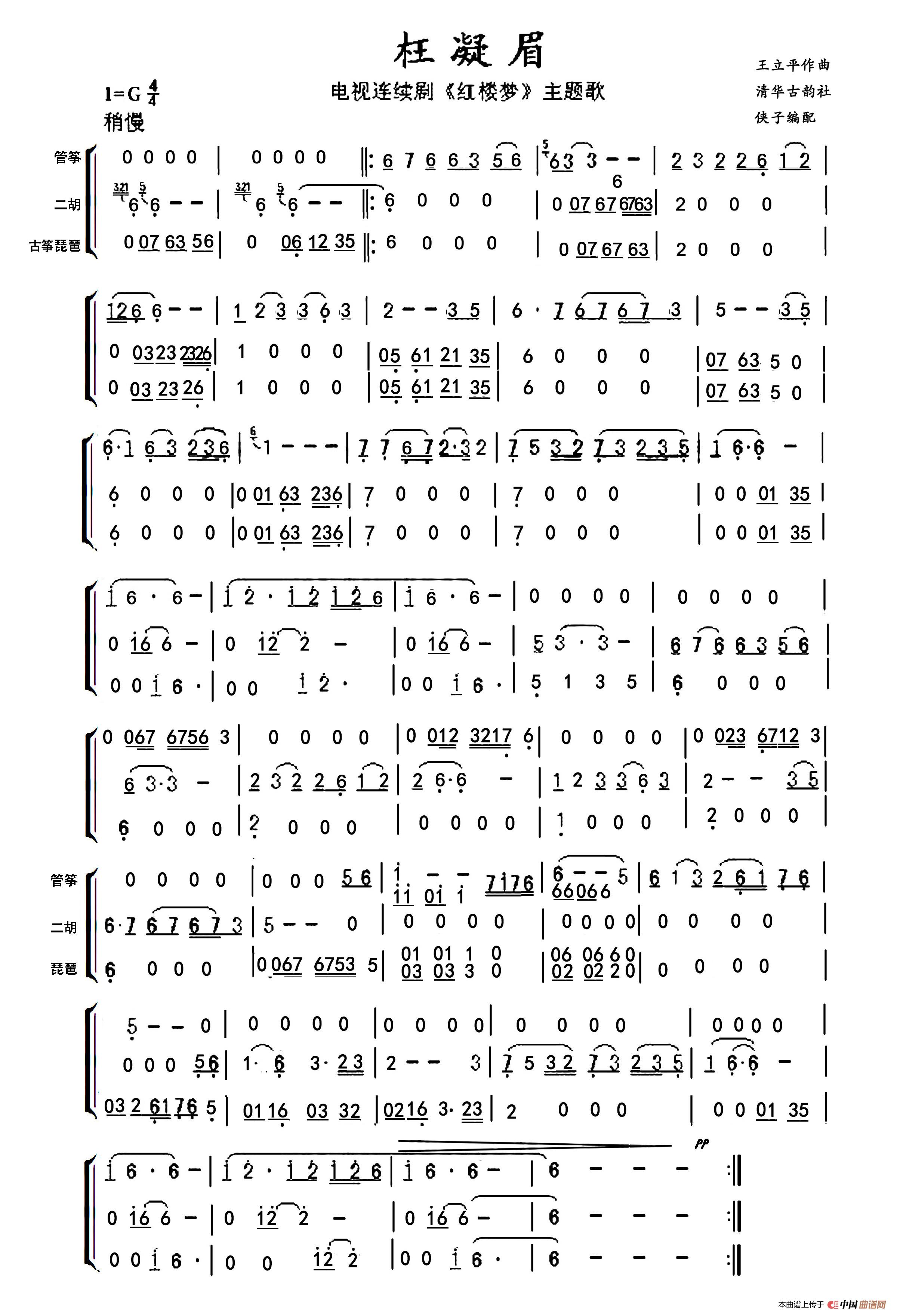 关于《枉凝眉(三重奏)》曲谱的评论