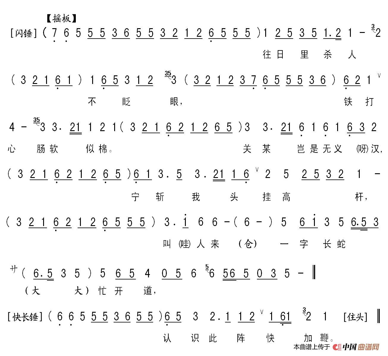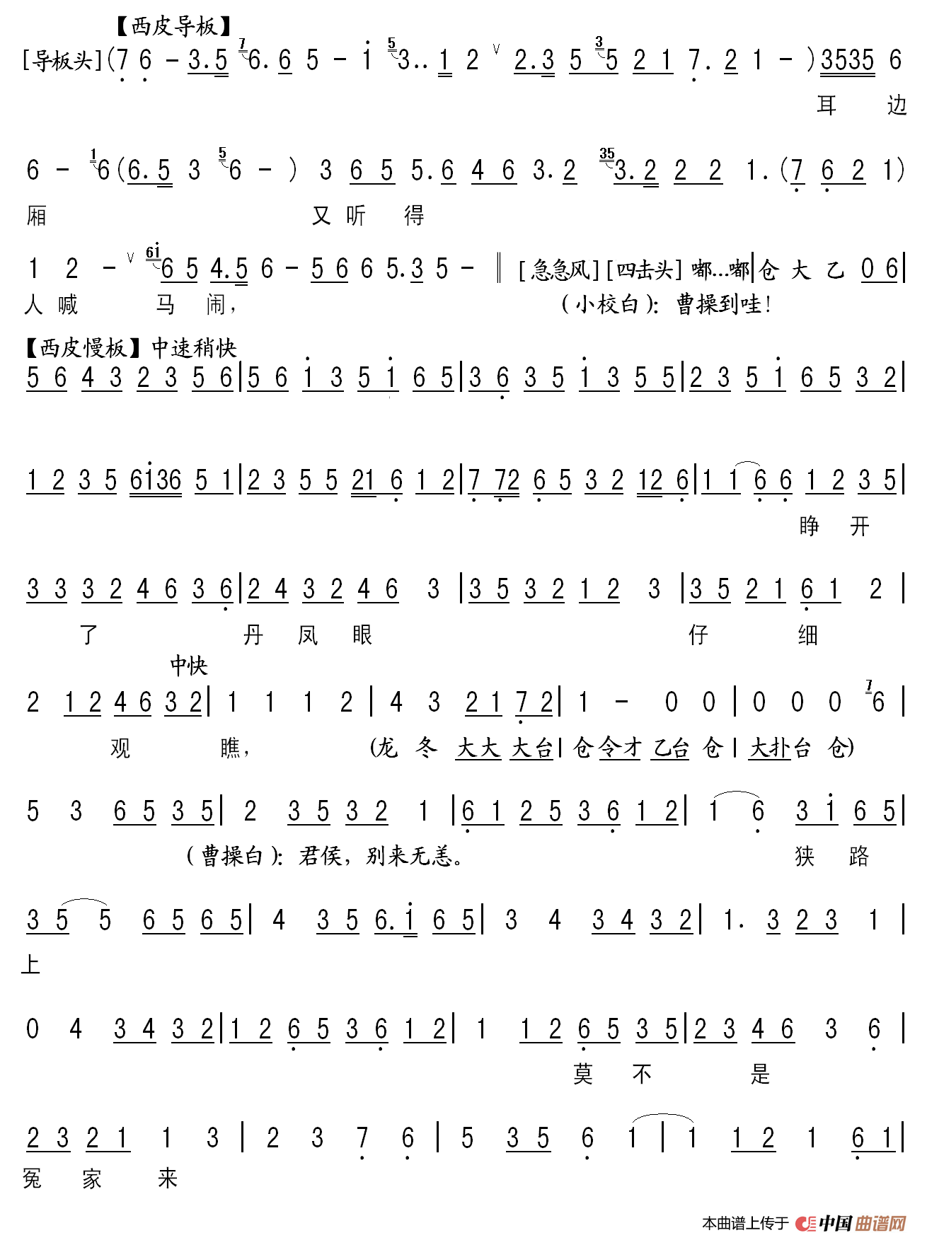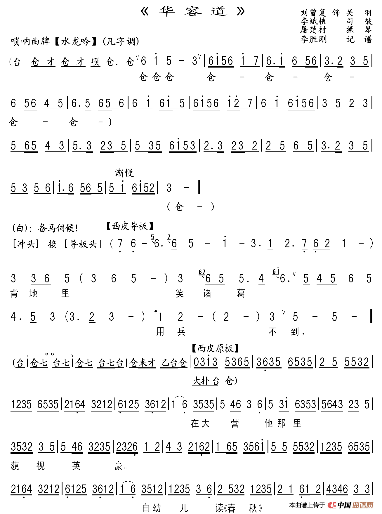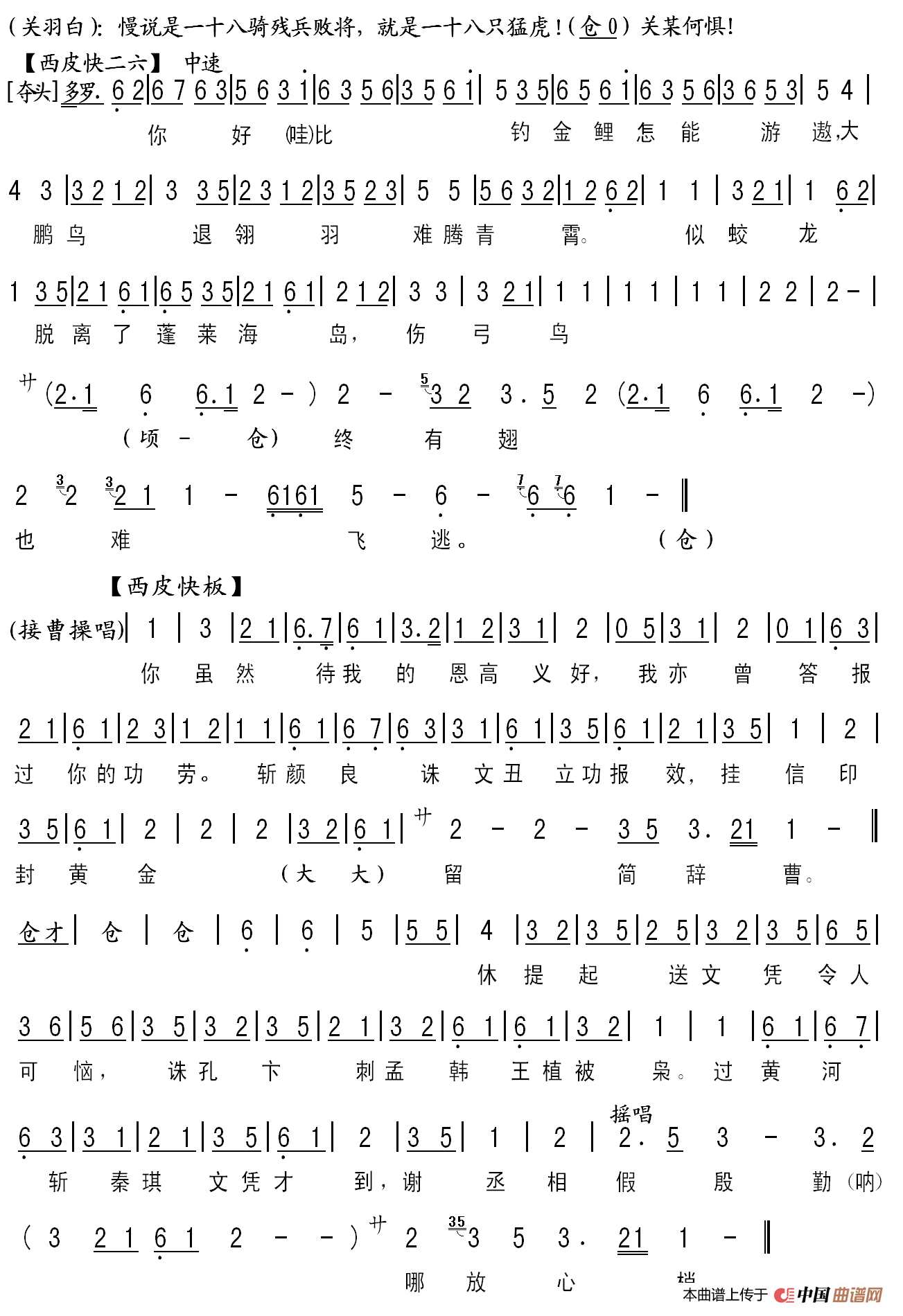 华容道关羽唱段伴奏谱