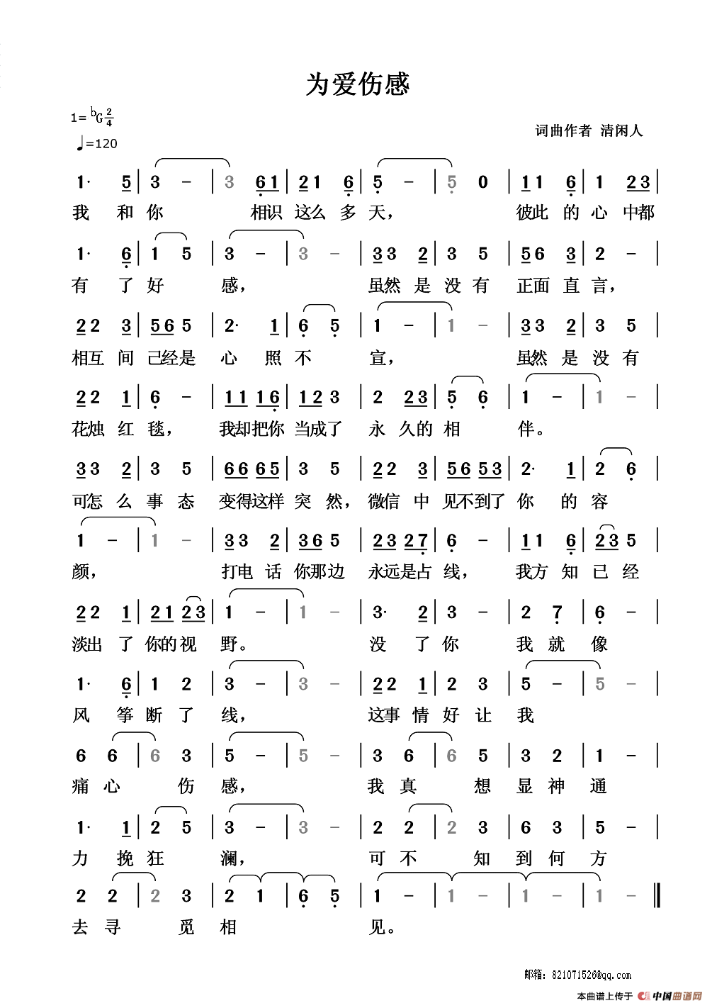 关于《为爱伤感 》曲谱的评论