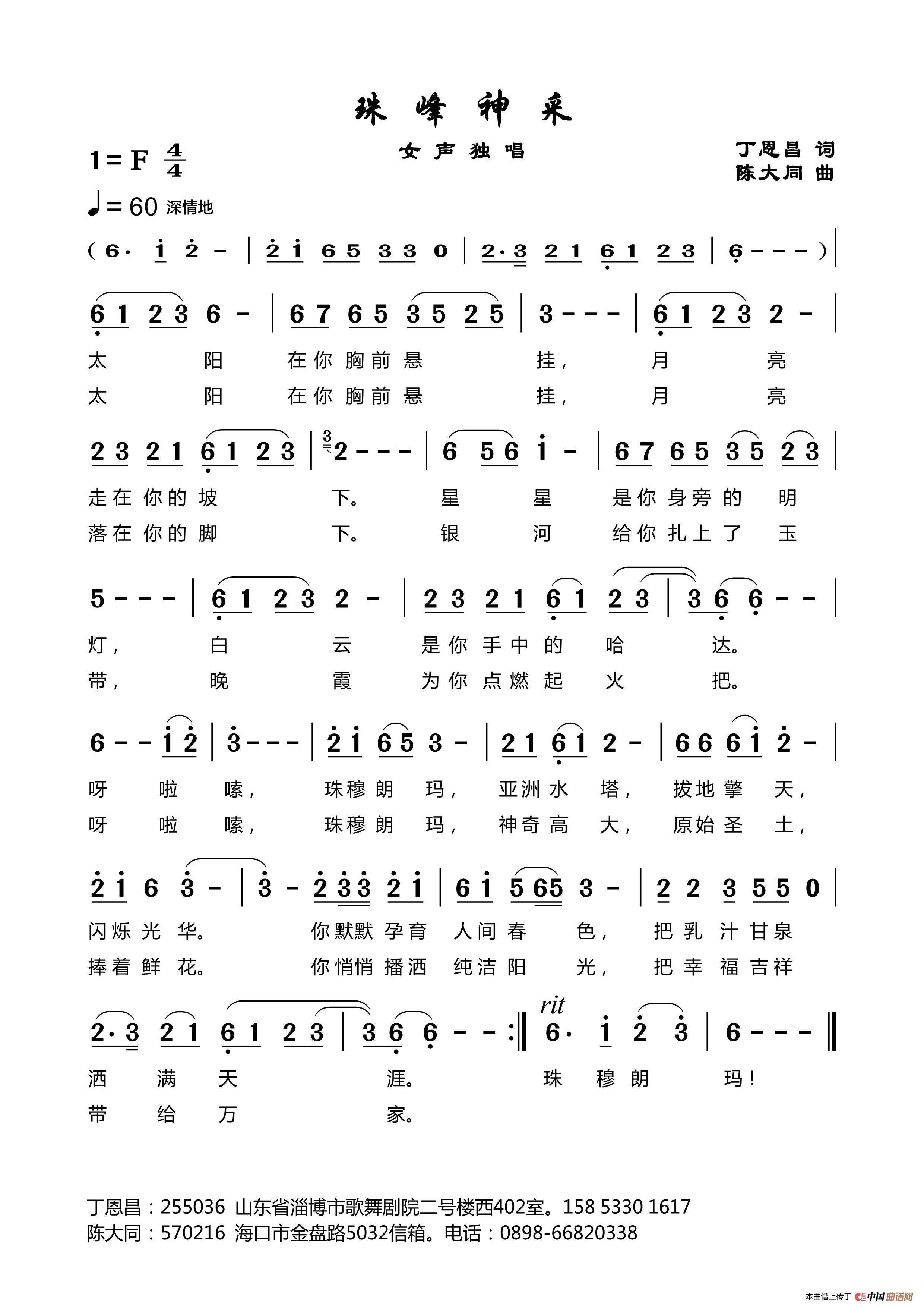 关于《珠峰神采》曲谱的评论