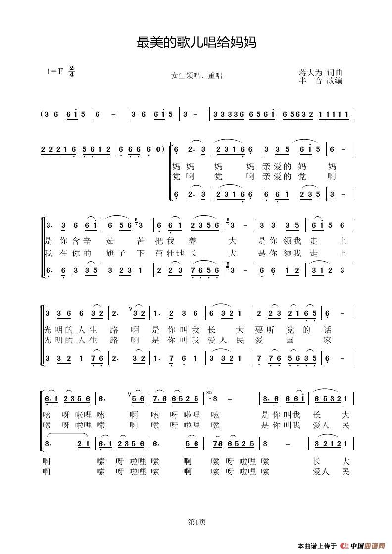 关于《最美的歌儿献给妈妈》曲谱的评论