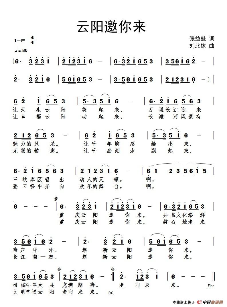 《云阳邀你来》或歌名《重庆云阳邀你来》