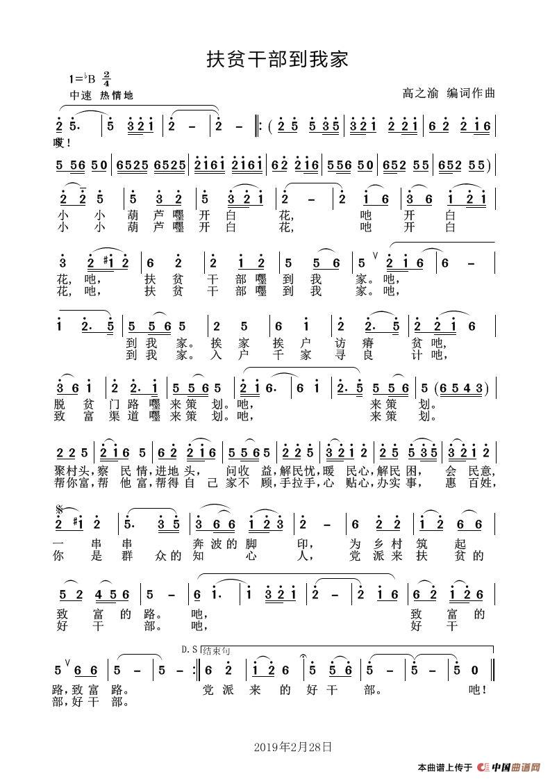 关于《扶贫干部到我家》曲谱的评论